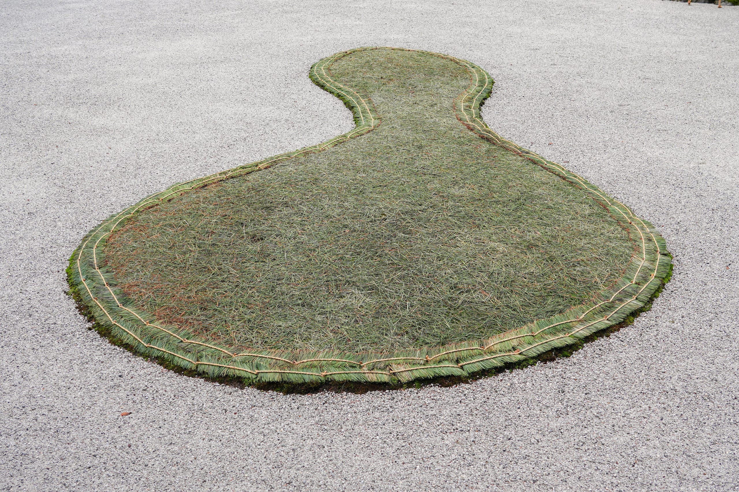 In winter, the Garden Department has begun the practice of crafting shiki-matsuba, coverings of dried pine needles placed on moss to help protect it from frost. These decorations fit within the idea of tei-en no fuyu-jitaku (庭園の冬支度), which translates to “garden’s winter preparation,” or as Torii puts it, caring for the plants by keeping them “cozy” in winter.