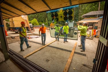 The company’s website describes the system’s precision as: “Extremely specialized.” It takes about a 16 week lead time for one piece of glass. The rollers [they are on] are about eight hundred to one thousand pounds each for just one of the doors. The rollers have to be set perfectly. If they are off, they will not move,” said Josh Faulkner, Cultural Crossing Project Superintendent with Hoffman Construction. You will see the sliding Vitrocsa glass curtains on the first floor of the Garden House, the Jordan Schnitzer Japanese Arts Learning Center, and the Umami Café.