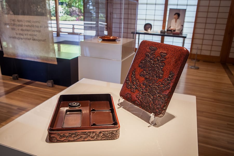 In Kamakura, Japan, a small history-bound city located about an hour south of Tokyo, the craft of carved, lacquered woodwork has been passed down from father to son for 29 generations. One of the oldest establishments working in this medium is the Goto family’s Hakkodo. Breaking new ground as the first woman to head the family business, Keiko Goto is building upon the tradition of her ancestors while creating work that is both innovative and uniquely her own. In this exhibition, Keiko and her artisan sister Naoko Goto have brought all four generations of Hakkodo work to the Portland Japanese Garden for the first time in more than one-hundred years.