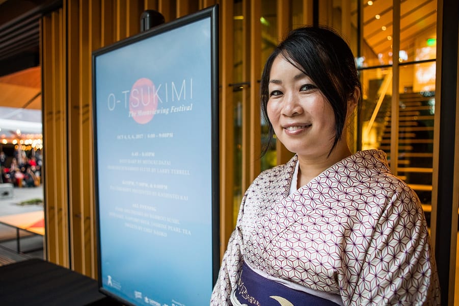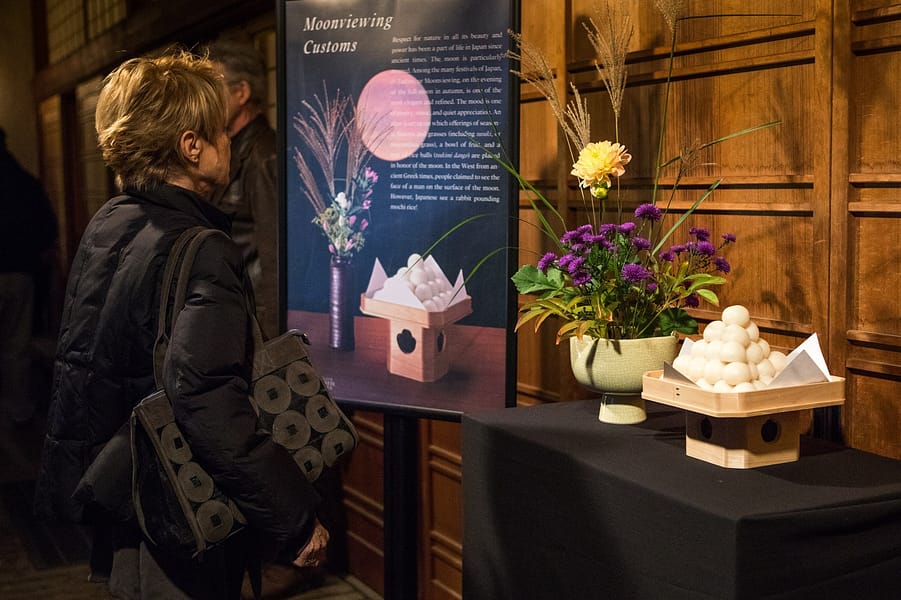 From October 4-6, 2017, the Garden sold out its annual O-Tsukimi, the Moonviewing Festival. Lit lanterns created a warm, peaceful ambience as guests strolled through the Garden. Music from Koto harpist Mitsuki Dazai and Shakuhachi flautist Larry Tyrell played as guests enjoyed dinner from Bamboo Sushi and watched the harvest moon rise above Portland.