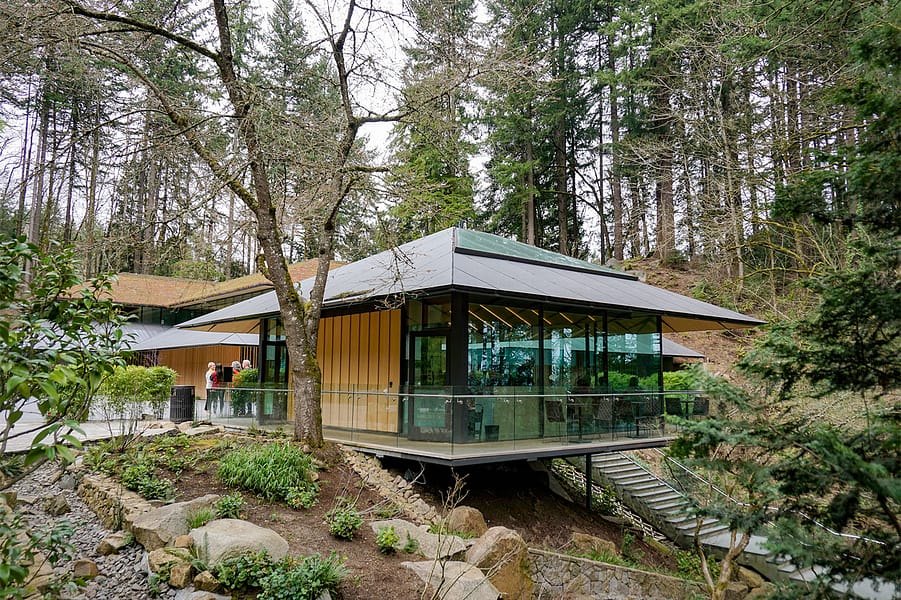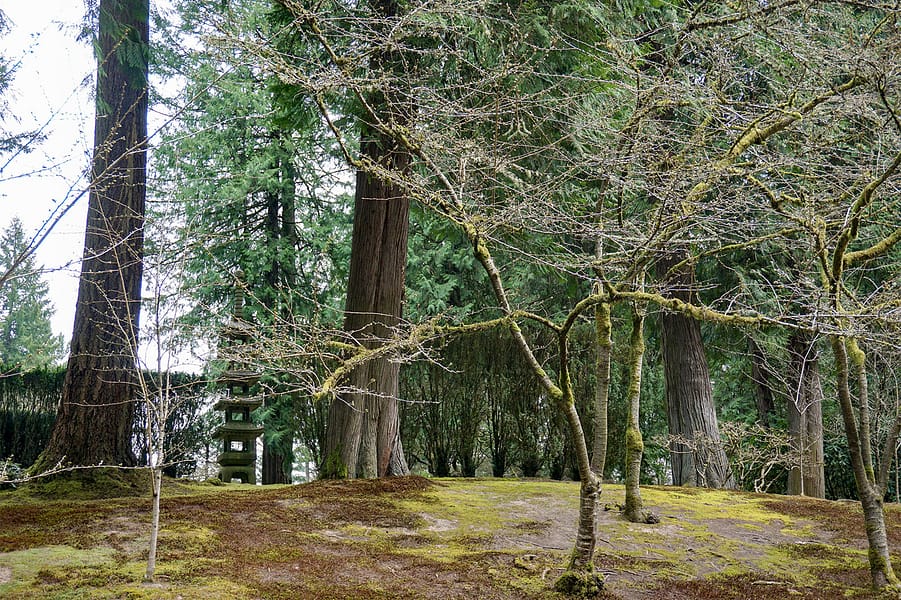 The Yoshino Cherry trees above the Umami Café and on Cherry Hill (in the Strolling Pond Garden across from Heavenly Falls) are barely starting to show buds. The Flat Garden’s Weeping Cherry is further along but still far from fully in bloom.