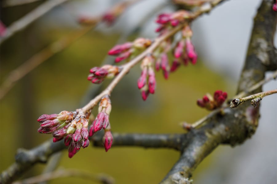 We’ve started to get questions about the status of the Garden’s cherry blossoms. As you can see in these photos, our blooms are still a while away.