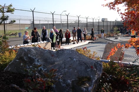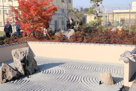 The garden, with features including a gate, pine trees, a sand and stone garden, a koi pond and a bridge, is maintained through privately raised funds at no taxpayer expense. About 200 volunteers including the prison community worked for 96 days, clocking 12,000 hours and raising $200,000 for the construction.
