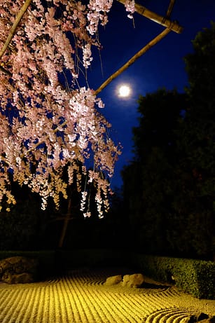 Finally, Reverend Matsuyama added this poem and a photo he had taken of the moon above the weeping cherry tree in his exquisite garden: