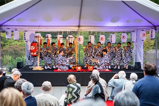 In 2018, a group of Gion Matsuri musicians and dancers, led by Masataka Hata of the 300-year-old Shoyeido Incense Company of Kyoto, traveled to Portland with the Ayagasa-boko, one of the actual floats that are part of the procession and the centerpiece of our Gion Matsuri exhibition. We were honored to have them here to show us how one of the world’s great cultures learned to survive an epidemic by believing in the spiritual power of working together as a community.