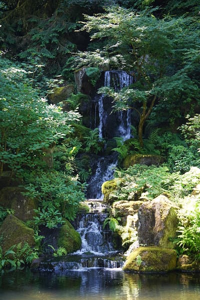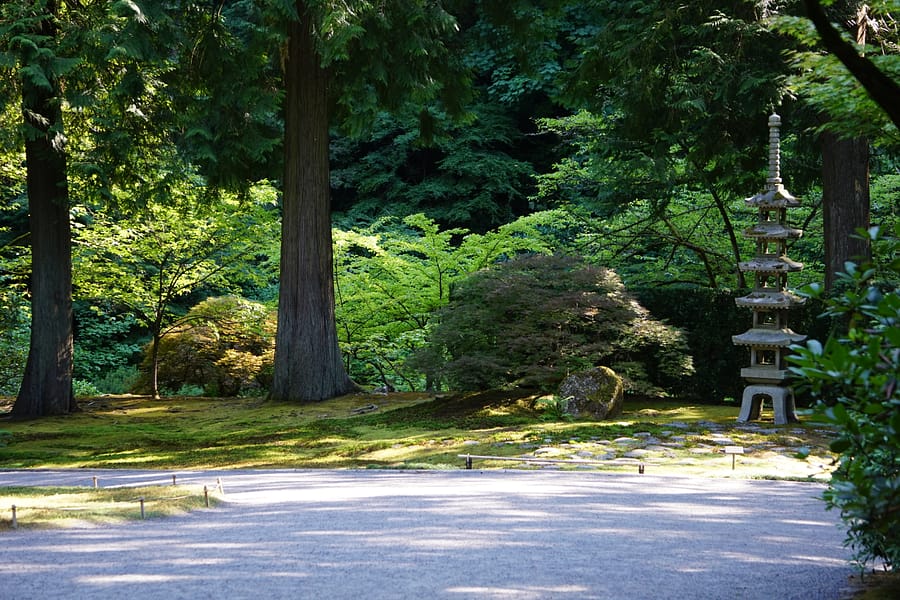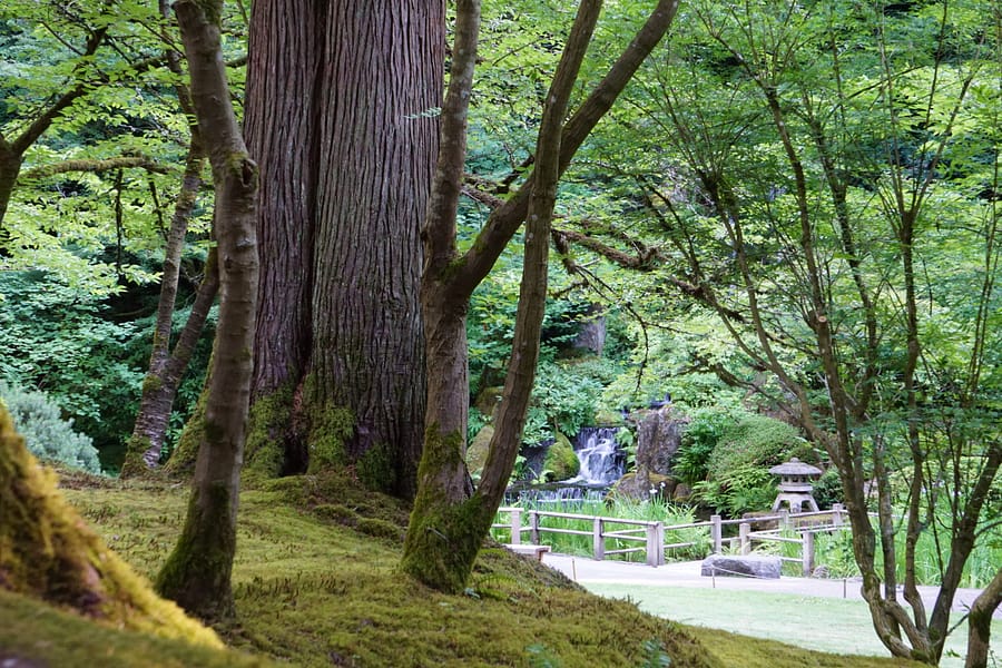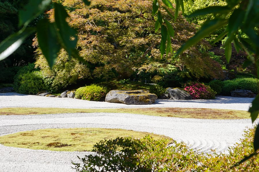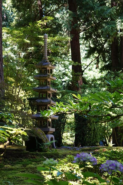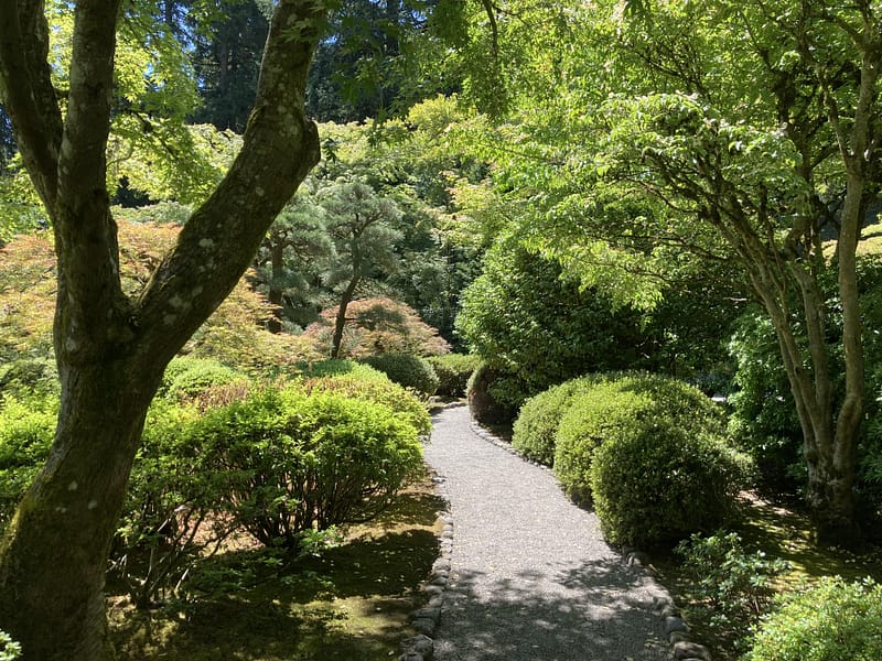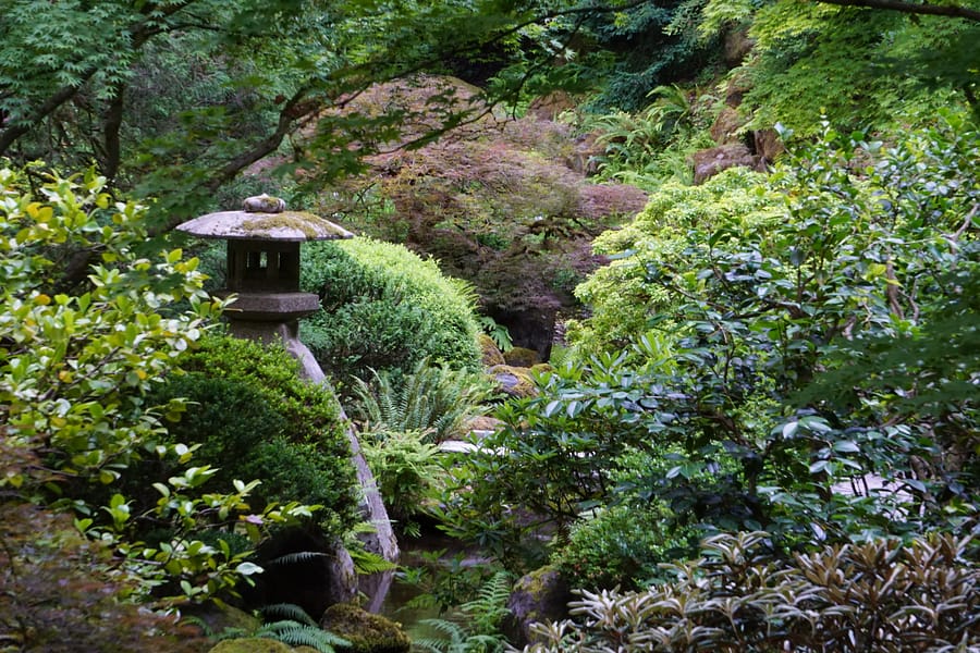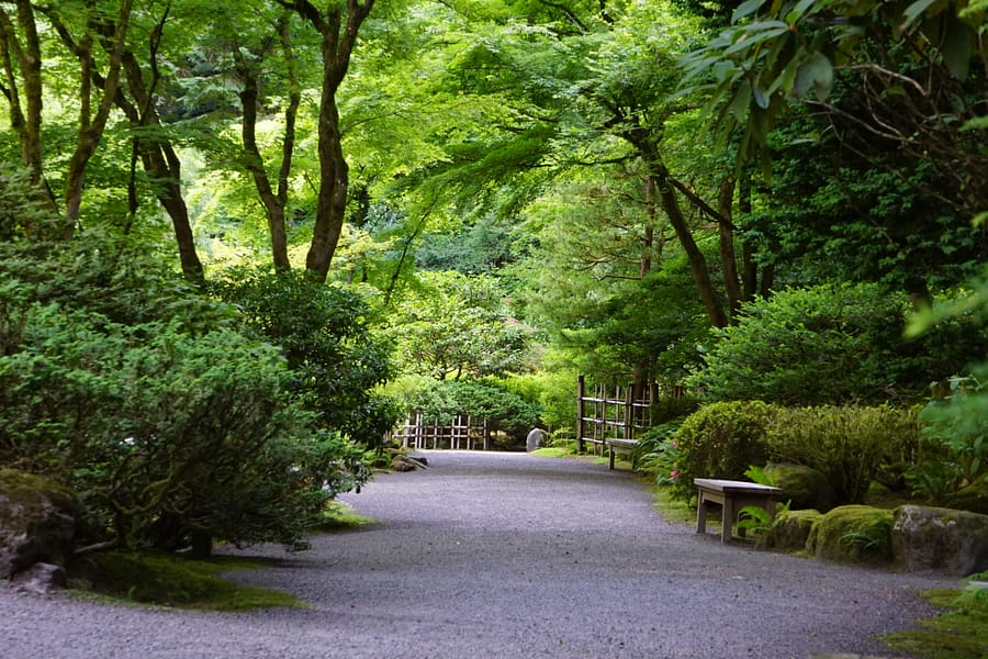 A Japanese garden doesn’t focus on any one plant species or a collection of species. Rather, it’s a composition, intended to be experienced as a single work, like an orchestra playing a symphony. Listen to the sounds of trickling streams, find a quiet moment among the shades of green, and notice the gentle breeze flow through the leaves.