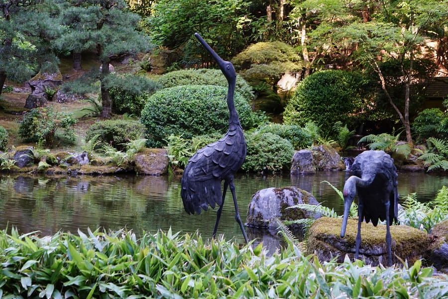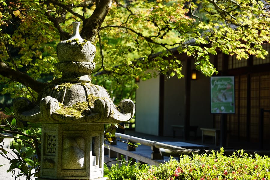 A Japanese garden doesn’t focus on any one plant species or a collection of species. Rather, it’s a composition, intended to be experienced as a single work, like an orchestra playing a symphony. Listen to the sounds of trickling streams, find a quiet moment among the shades of green, and notice the gentle breeze flow through the leaves.