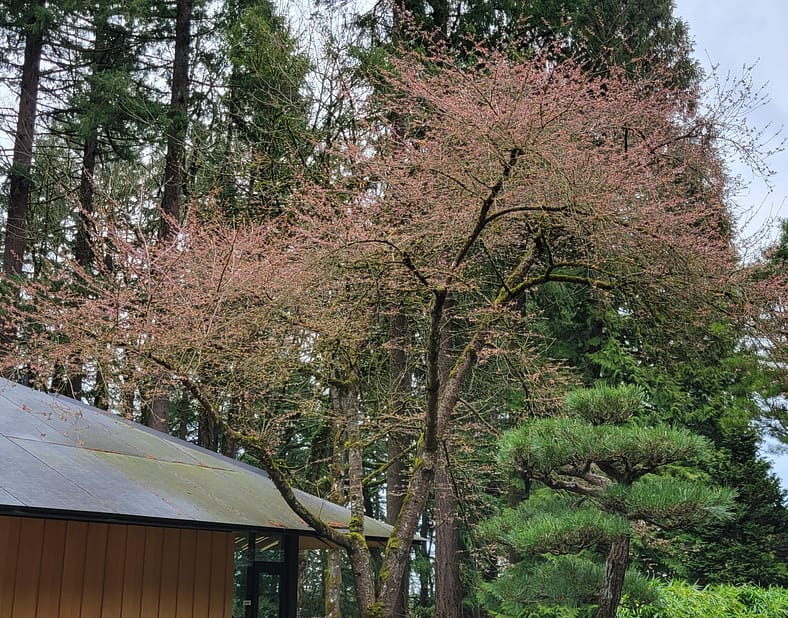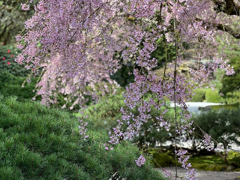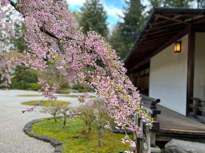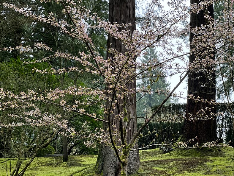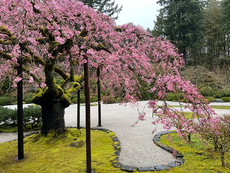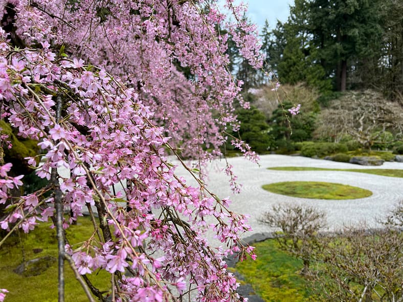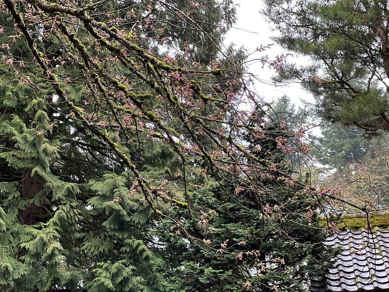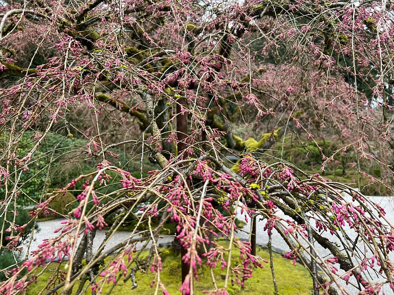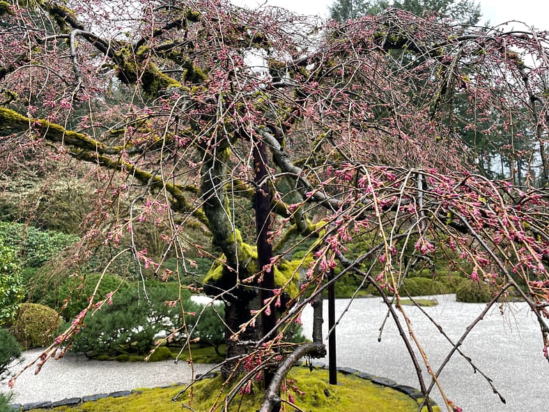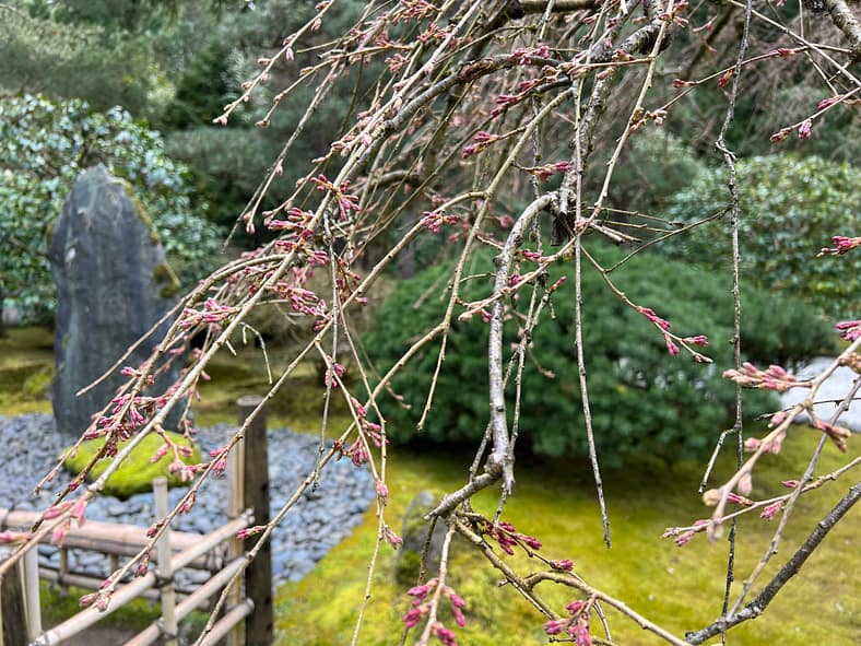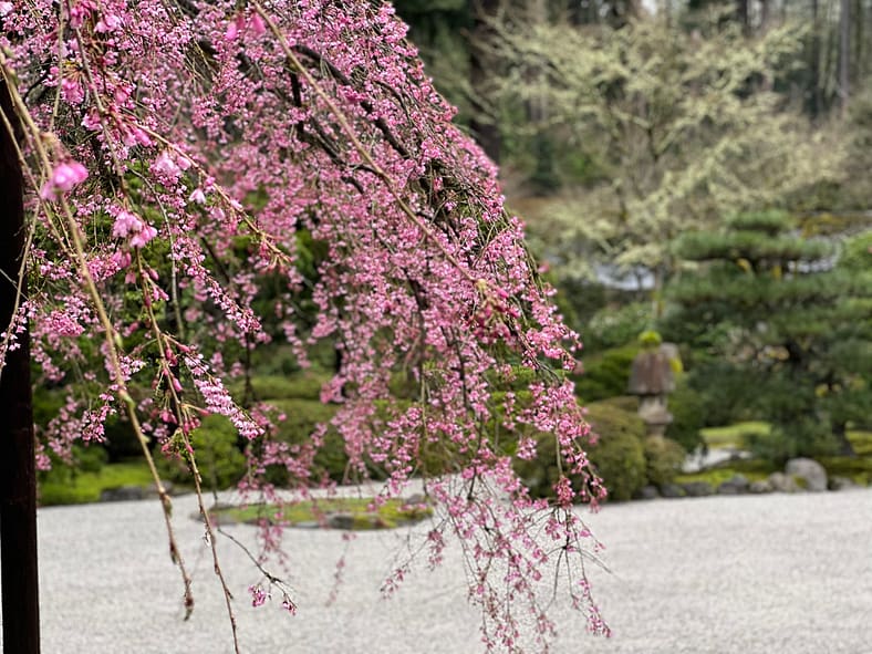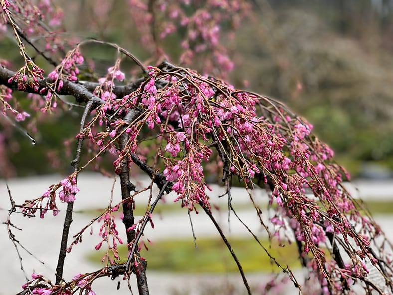 In Portland Japanese Garden, the arrival of spring is often heralded by the awakening of our cherry blossoms. Our delicate and beautiful Yoshino and Weeping Cherry trees will soon glow with the whites and pinks we sorely missed during the gray days of winter. To help plan your visit, we’ve created this hub where you will be able to find frequent updates on the state of the blooms.