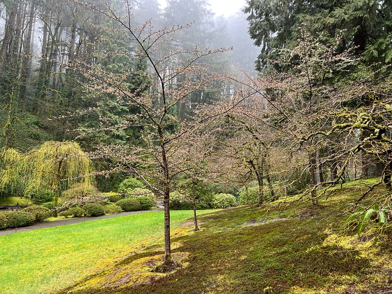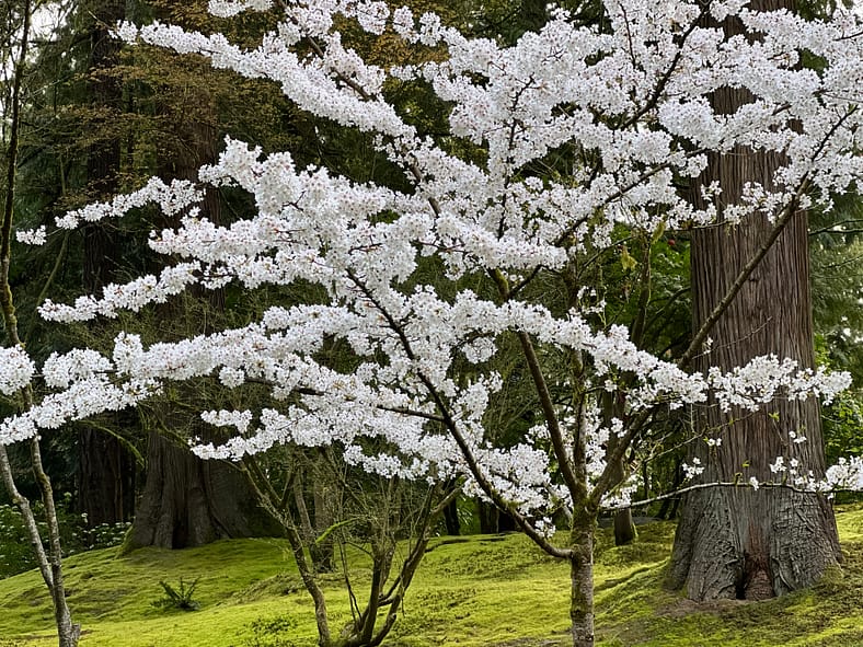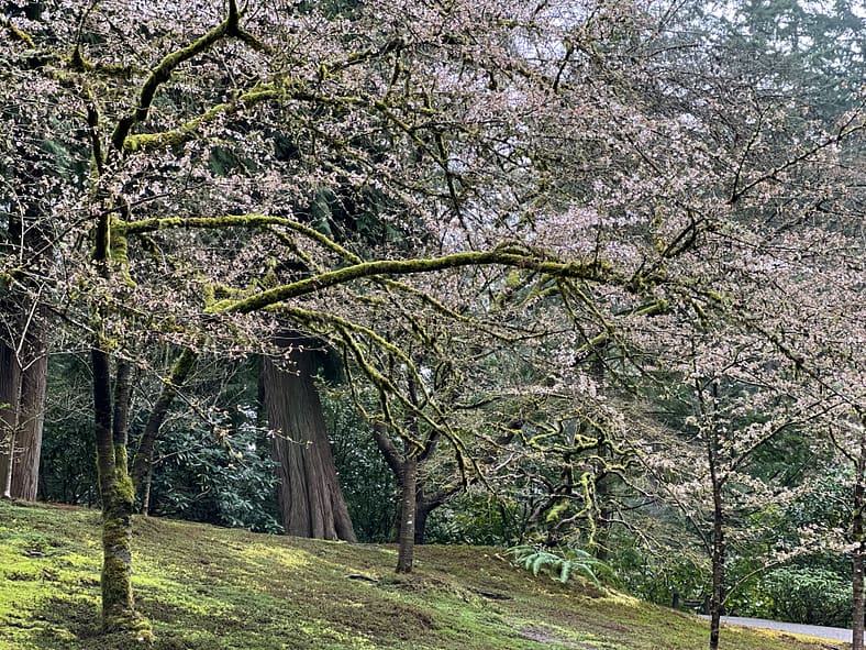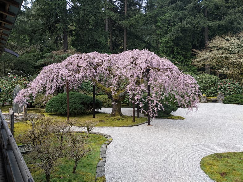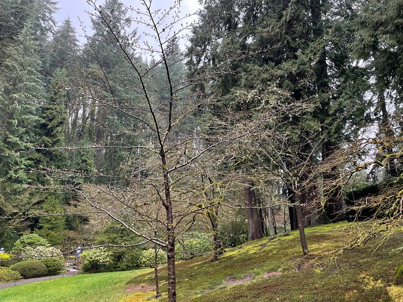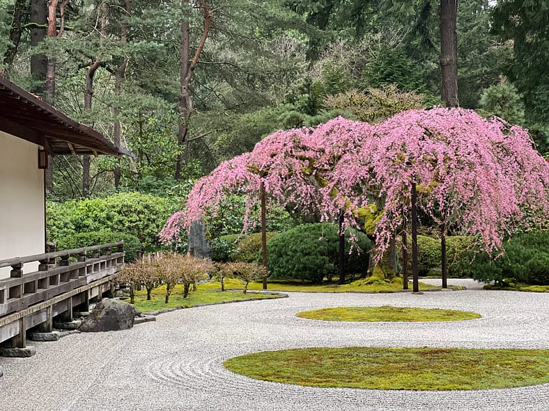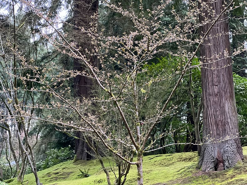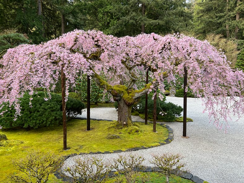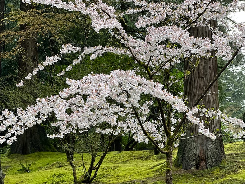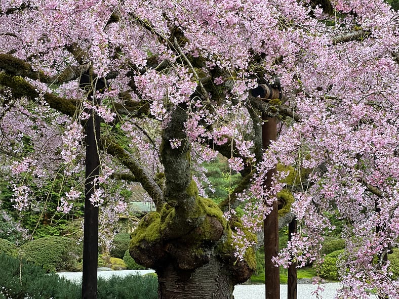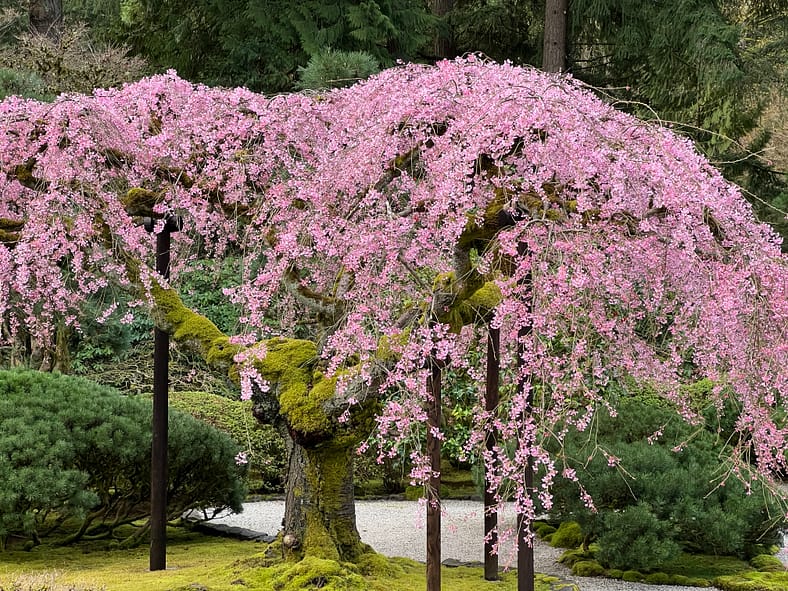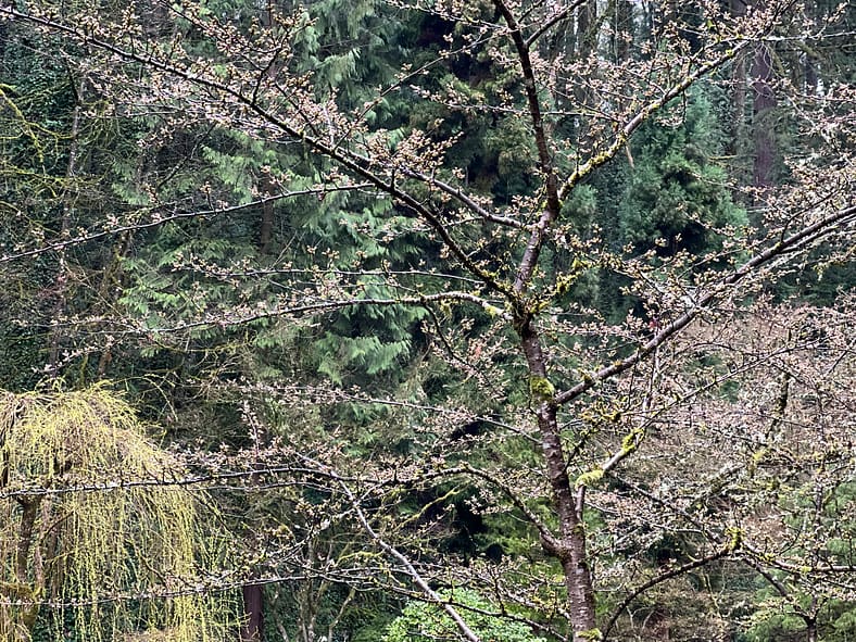 In Portland Japanese Garden, the arrival of spring is often heralded by the awakening of our cherry blossoms. Our delicate and beautiful Yoshino and Weeping Cherry trees will soon glow with the whites and pinks we sorely missed during the gray days of winter. To help plan your visit, we’ve created this hub where you will be able to find frequent updates on the state of the blooms.
