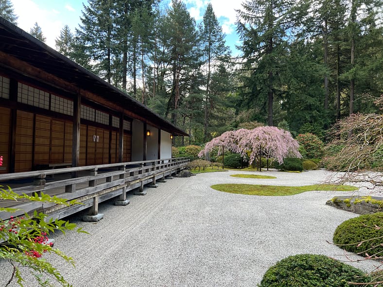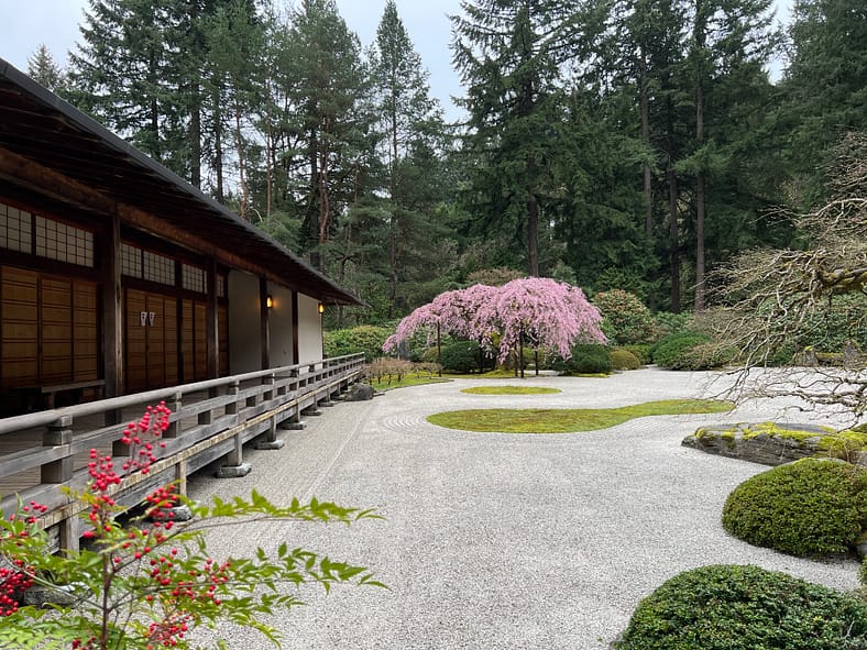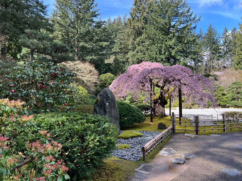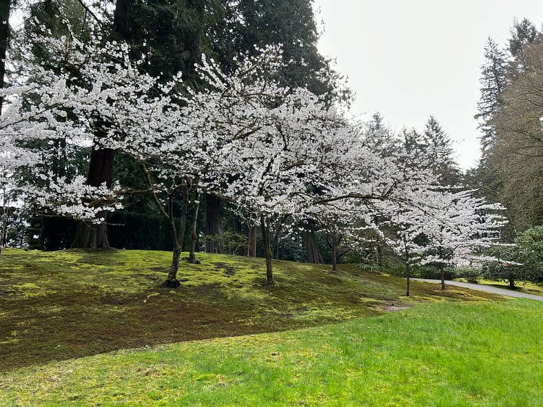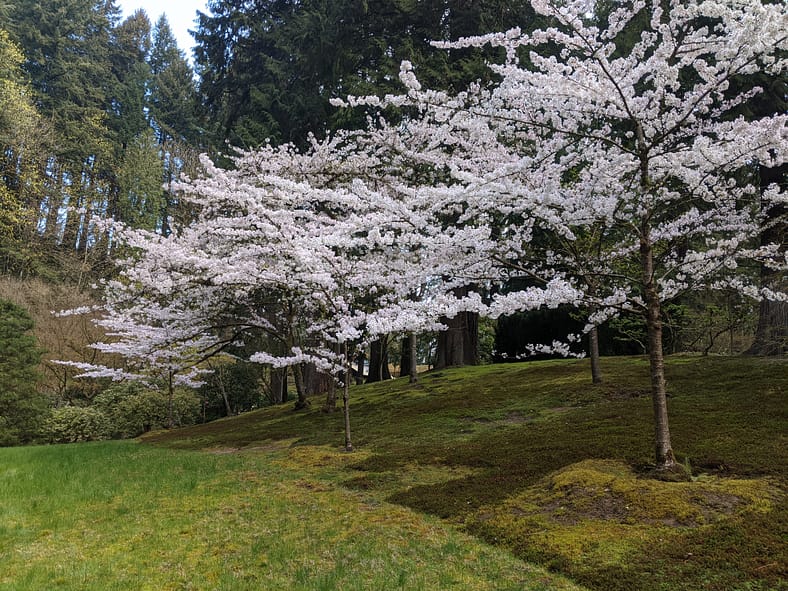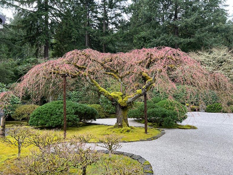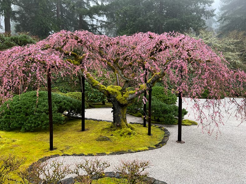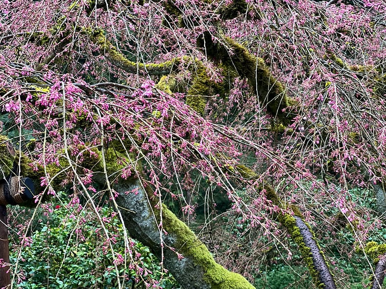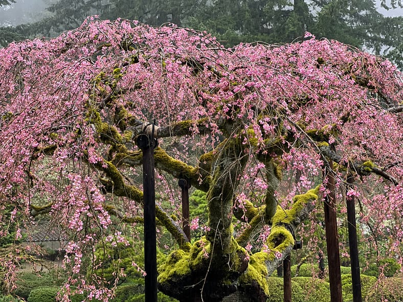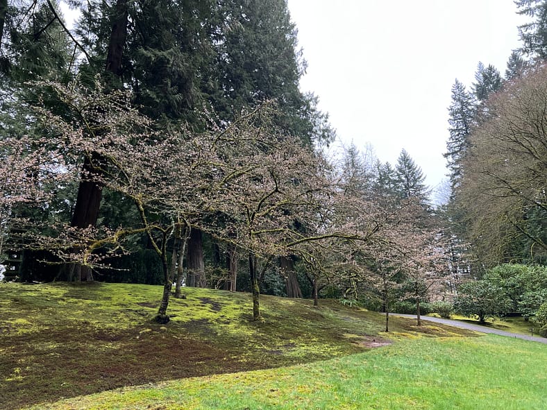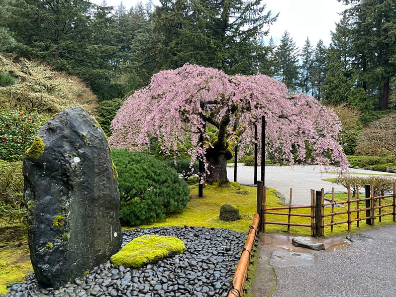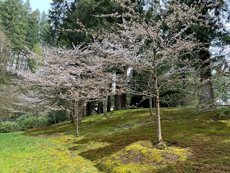 In Portland Japanese Garden, the arrival of spring is often heralded by the awakening of our cherry blossoms. Our delicate and beautiful Yoshino and Weeping Cherry trees will soon glow with the whites and pinks we sorely missed during the gray days of winter. To help plan your visit, we’ve created this hub where you will be able to find frequent updates on the state of the blooms.