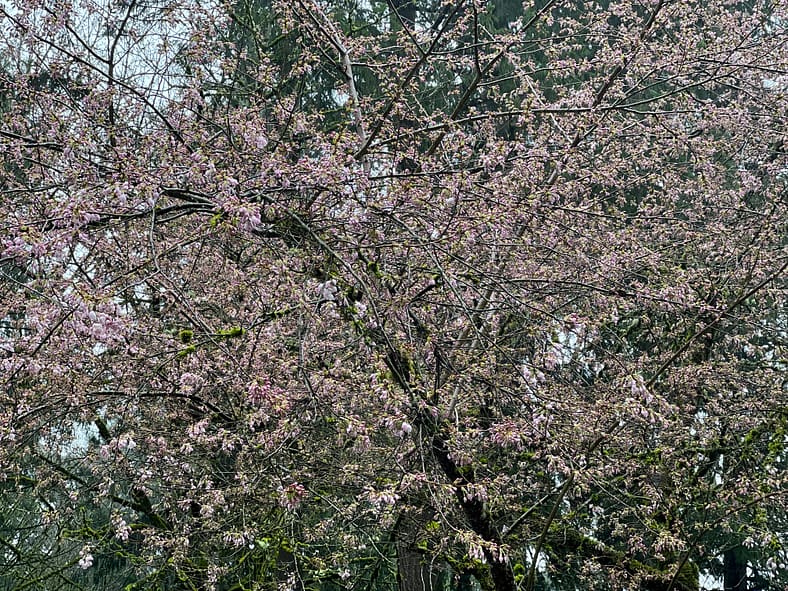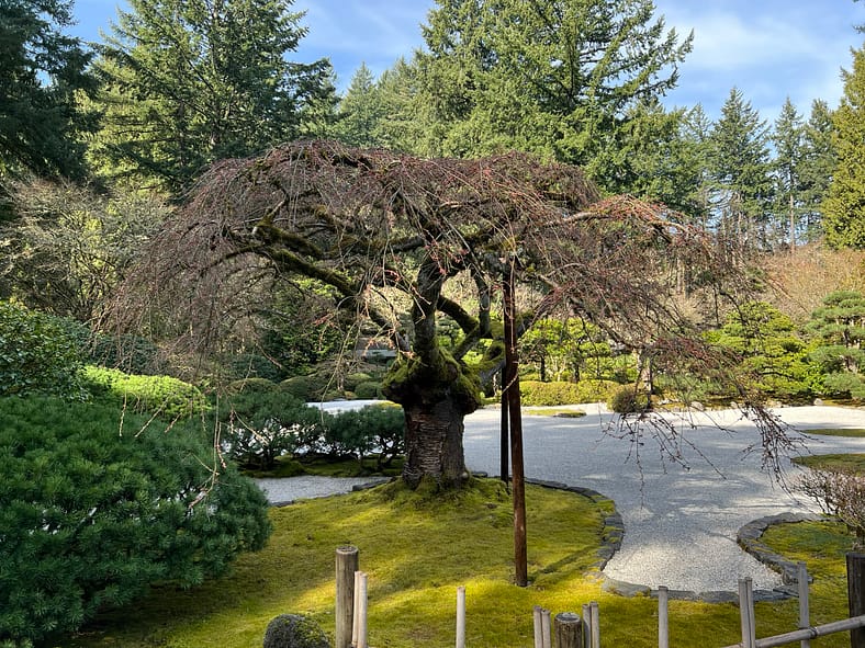 A closeup of the Weeping Cherry in the Flat Garden.