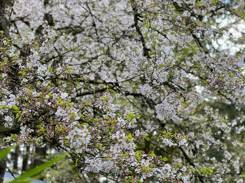 A closer look at Yoshino Cherry Trees across from the Heavenly Falls.