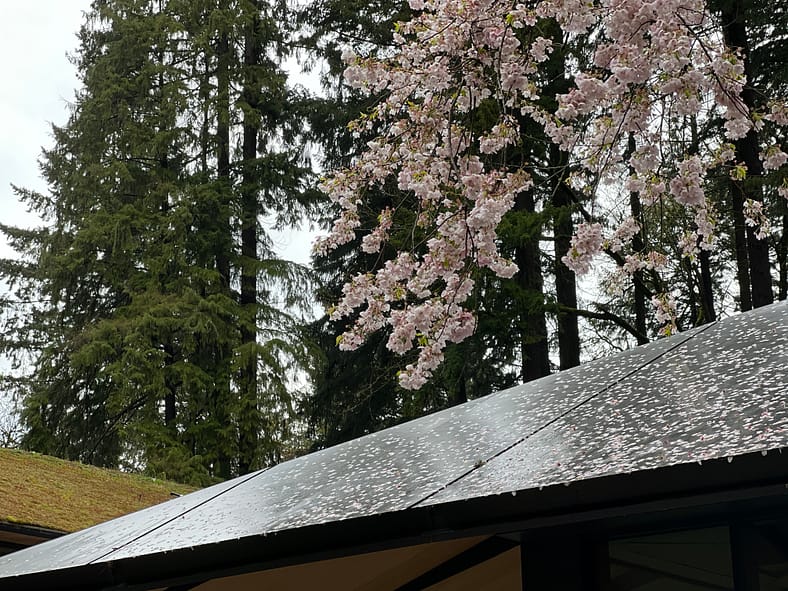 Today marks the conclusion of our regular updates on the state of our sakura, or cherry blossoms. The pink and white blooms have started to fade in vibrancy and their petals have started to adorn Portland Japanese Garden in a delicate snow. Now, the Garden is ready for the full embrace of the spring. Make sure you become a member and rediscover the beauty of the Garden with each visit.