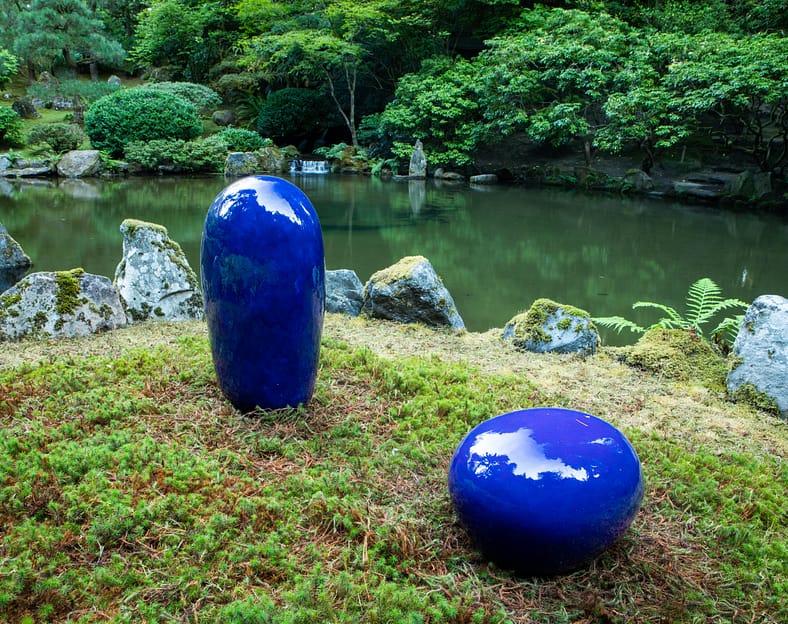The Portland Tribune’s Joseph Gallivan came to Portland Japanese Garden to explore our final exhibition of 2022, Garden of Resonance: The Art of Jun Kaneko. Gallivan writes, “There’s a quiet beauty to the eight outdoor forms, which are all untitled. Some of the oval ones are nicknamed dango, the name of a Japanese dumpling. Aki Nakanishi, the garden’s curator of culture, art and education, went to the artist’s studio in Omaha, Nebraska, and chose the works, then worked with Kaneko on their placement in the garden for maximum ‘resonance.'”