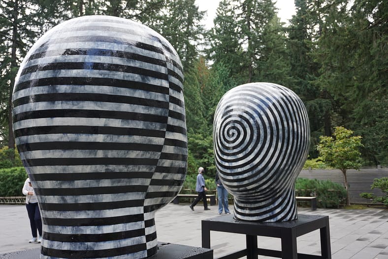 Portland Japanese Garden is excited to share that its final art exhibition of 2022 features the work of internationally acclaimed artist Jun Kaneko (b. 1942). Kaneko, winner of the prestigious Lifetime Achievement Award from the International Sculpture Center, has made major contributions to the field of sculptural art on a global scale, exploring the relationships between art, nature, and people with their bold scale and placement. The current art exhibition, Garden of Resonance: The Art of Jun Kaneko, presents a key selection of his mesmerizing, otherworldly sculptures merged into the Garden’s spaces, along with a collection of his smaller works on display in the Pavilion Gallery.