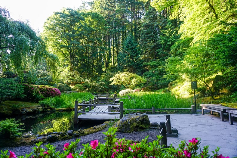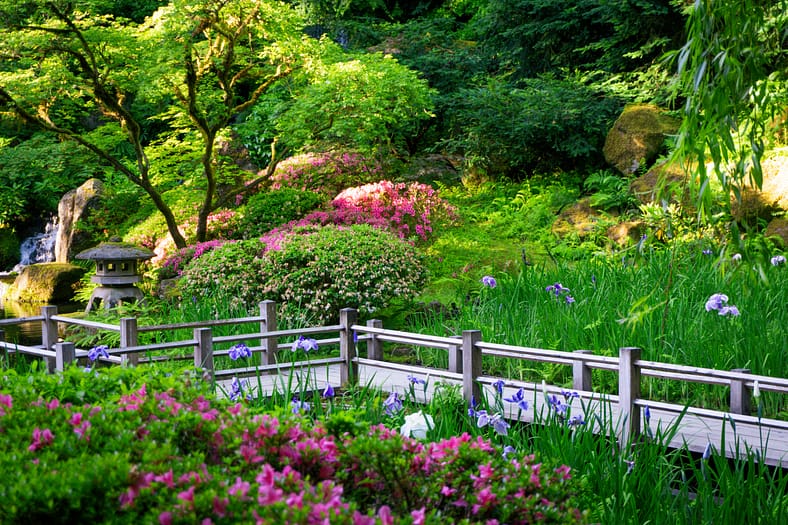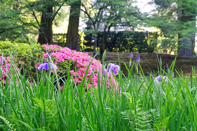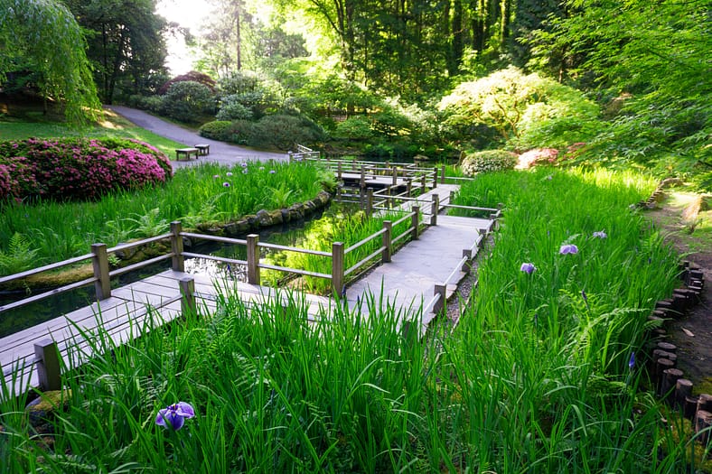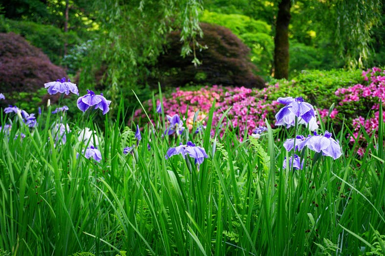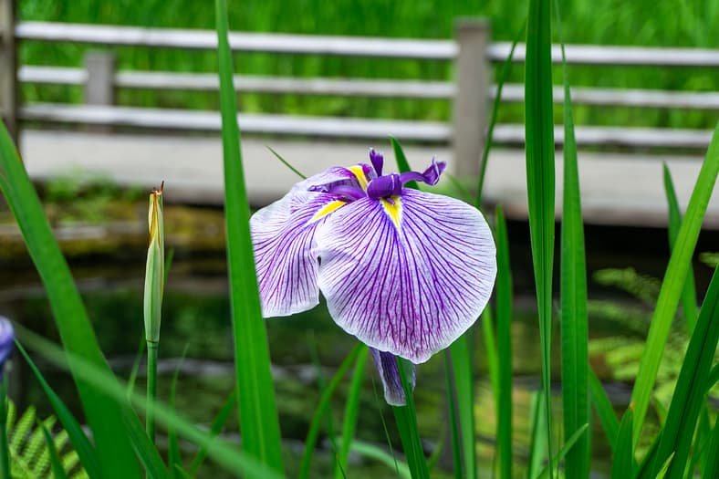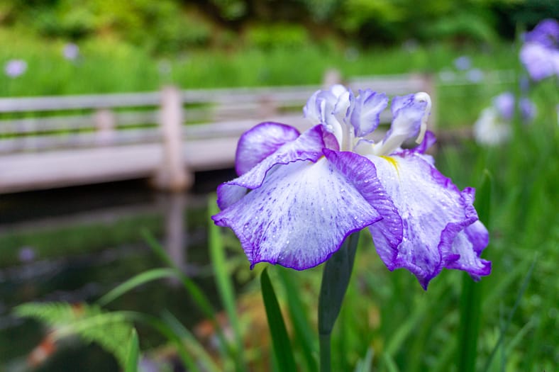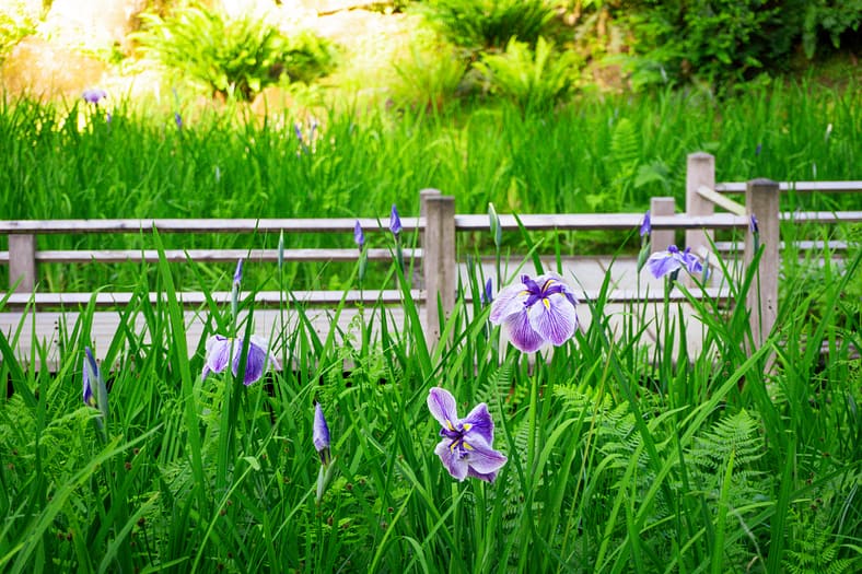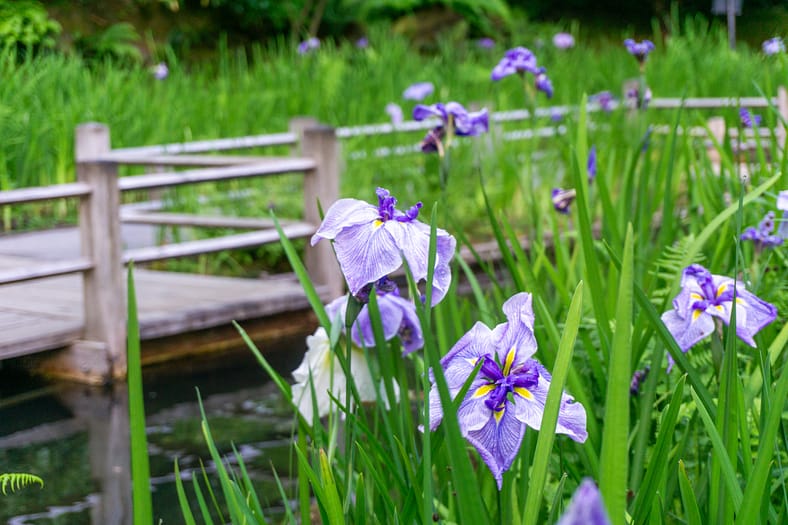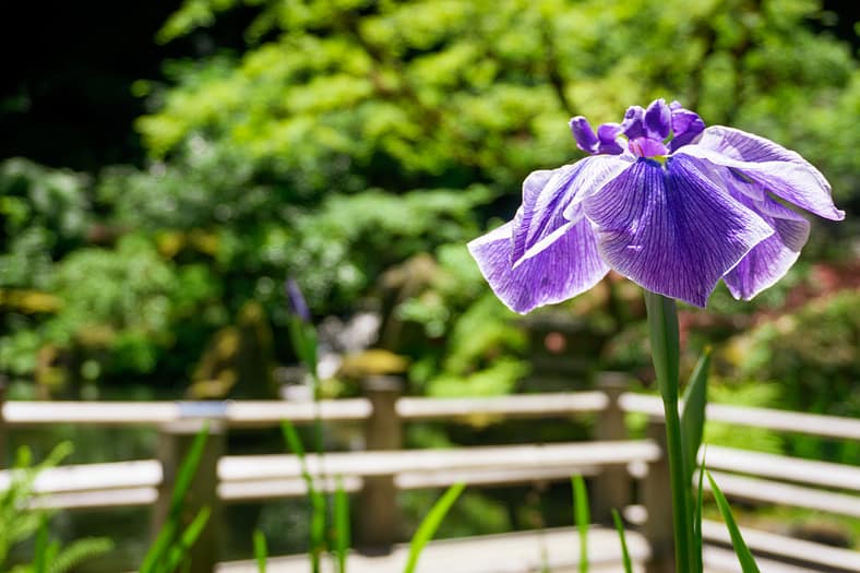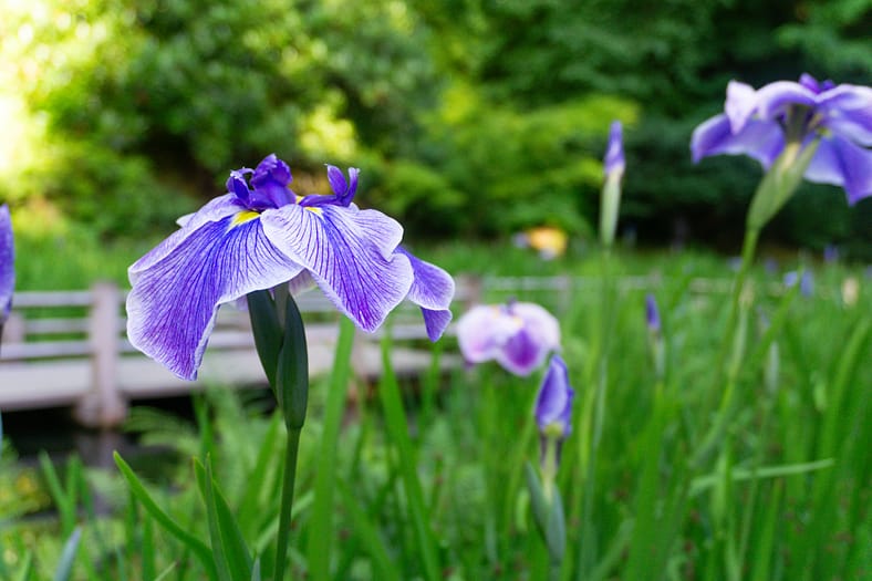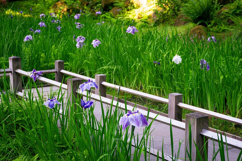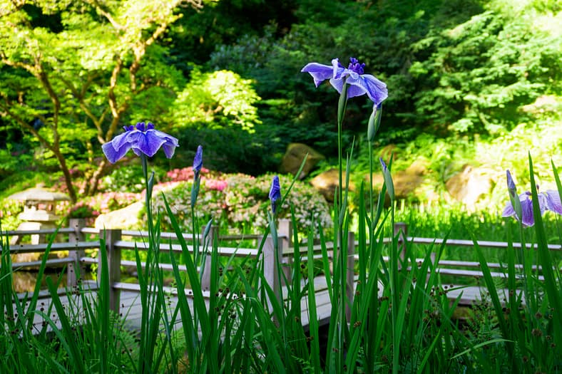 One of the horticultural highlights of Portland Japanese Garden in summer are the blooming of irises alongside the Zig-Zag Bridge. While every year is different, the Garden’s irises tend to bloom in late June, just as it officially becomes summer. To help plan your visit to see them, we have created this page that will be regularly updated until their blooms conclude. The best way to view these stunning flowers is by becoming a member. In addition to the many benefits of a Portland Japanese Garden membership, those who join are able to visit during exclusive hours every morning the Garden is open (8:00 – 10:00am), a time when the Garden is less crowded during these busy summer months.