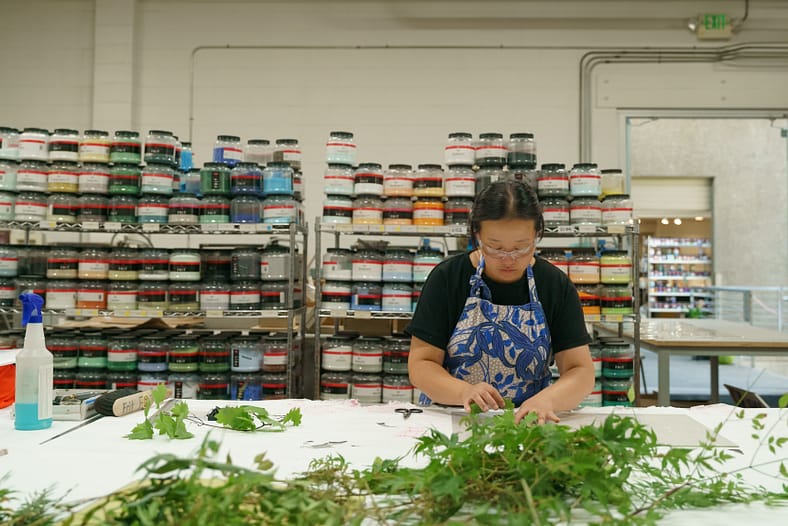 Titled Subtle Intimacy: Here and There, Sasaki is creating an immersive experience where transparent impressions of the Garden’s foliage are forever preserved in panes of clear glass. Simultaneously scientific and ethereal, Sasaki doesn’t focus on individual works but instead combines pieces into an installation that creates an immersive experience for its viewers. The glass panels that will make up the installation in Portland Japanese Garden’s Pavilion will be composed of plants both from Portland and Sasaki’s neighborhood in Kanazawa.