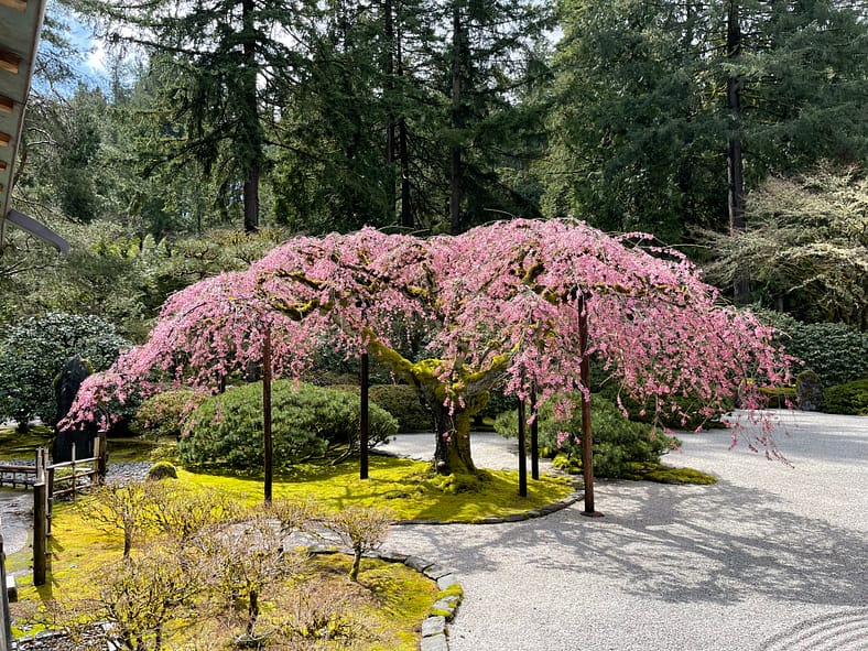 The Oregonian photojournalist Sean Meagher visited Portland Japanese Garden to capture photography of our cherry blossoms, which began to bloom this week. Meagher writes, “Garden-goers on Wednesday witnessed the cherry blossoms awakening in the Flat Garden and flanking the Umami Café as various pink hues dotting the tranquil green landscape between sun breaks and occasional rain drops.” If you’d like to see the state of the Garden’s cherry trees, you can do so by going to our Cherry Blossom Watch 2023 page, linked here.