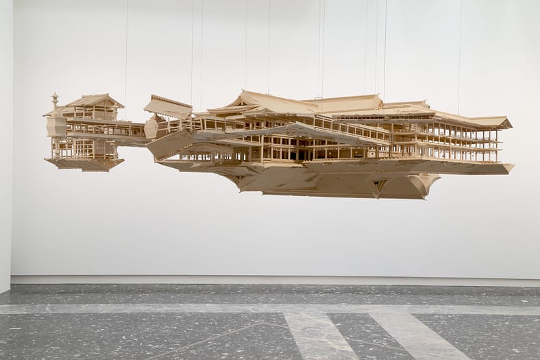 Starting on Sunday, September 24 and running through Monday, December 4, Portland Japanese Garden will debut its new art exhibition in its Pavilion and Calvin and Mayho Tanabe Galleries, Takahiro Iwasaki: Nature of Perception. Featuring the work of Japan Institute’s Artist-in- Residence, Takahiro Iwasaki, this Hiroshima-based artist gained worldwide recognition when he represented Japan at the 2017 Venice Biennale, a renowned contemporary art and architectural exposition often described as the Olympics of the art world. Iwasaki’s architecturally accurate models of historic Japanese sites are transformed into immersive installations, where his sculptures are suspended off the floor with an inverted duplicate model assembled underneath. Known for his Reflection Model series, Iwasaki plays with multiple perspectives, inviting his viewers to encounter the miniaturized work from different points of view, moving around to experience alternative angles, heights, and to savor the intricate details of man-made construction. Simultaneously beautiful and awe-inspiring, each Reflection Model enchants, yet also gives the viewer pause to contemplate the nature of the built environment, human ingenuity, and what it means for it all to be turned upside down.