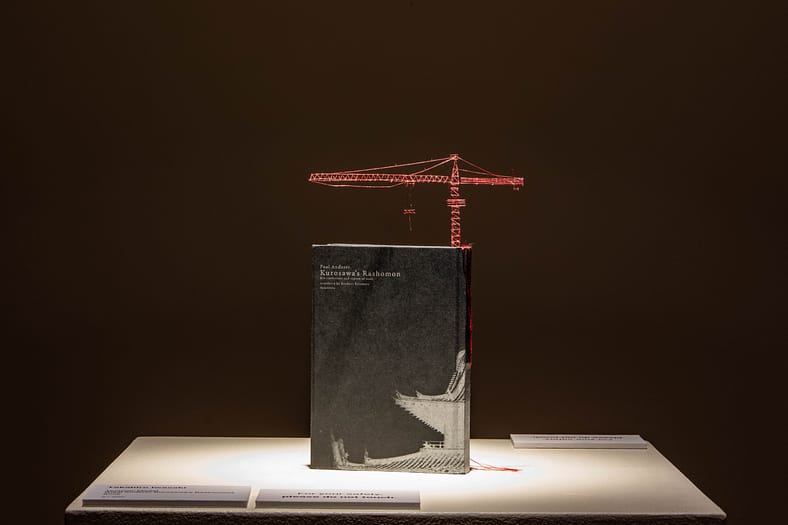 With these thoughts in mind, Iwasaki returned to his Hiroshima studio and set out to create one of his signature Reflection Models, sculptures that pay homage to Japan’s historic architecture and reference the reverential “mirror pond” tradition in Japanese landscape design. Each Reflection Model takes months of dedicated effort to construct, since it is not just one model but two, built to be suspended in air. In September, Iwasaki shipped his long-awaited sculpture from Japan and returned to Portland to debut Reflection Model (Rashomon). His three-week residency was spent creating an expansive sculptural installation for the Calvin and Mayho Tanabe Gallery that represents his understanding of the geography, infrastructure, and local industries that have given a home to Portland Japanese Garden.