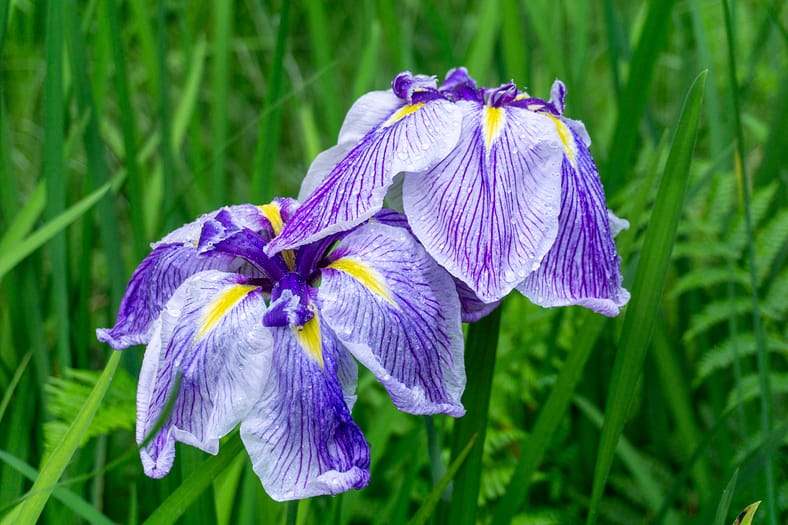 Native to Japan, Iris ensata is commonly known as “Japanese iris” outside of Japan. In Japan, 花菖蒲 (hanashobu) have been cultivated for over 500 years. Oregon and Washington are home to three of the nine specialty nurseries specializing in Japanese irises in the United States. Spuria, according to the American Iris Society’s encyclopedia, “are tall (2 to 5 feet in height) and elegant, and have very attractive foliage.”