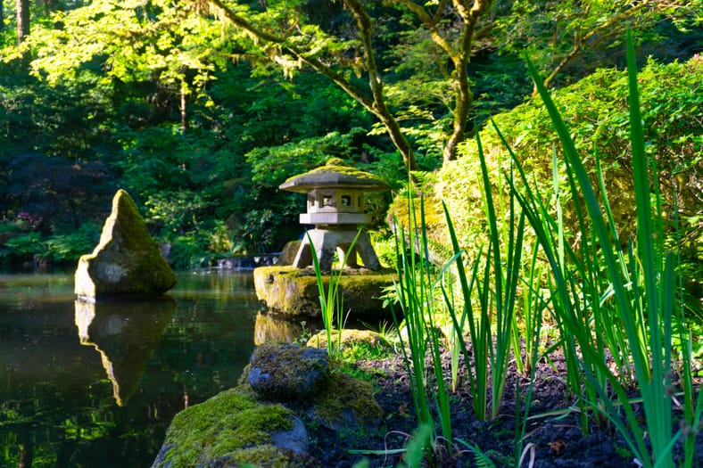 As Portland Japanese Garden transforms into a picturesque and verdant haven, the irises provide a pop of color as the harbinger of summer. The buds typically open in late June to reveal flowers nearly six inches across in shades of purple and white. Symbolizing purity and innocence, the narrow iris leaf resembles the shape of a samurai sword blade.