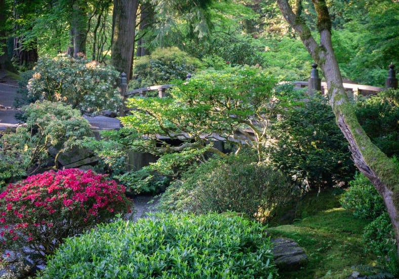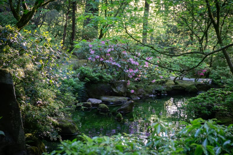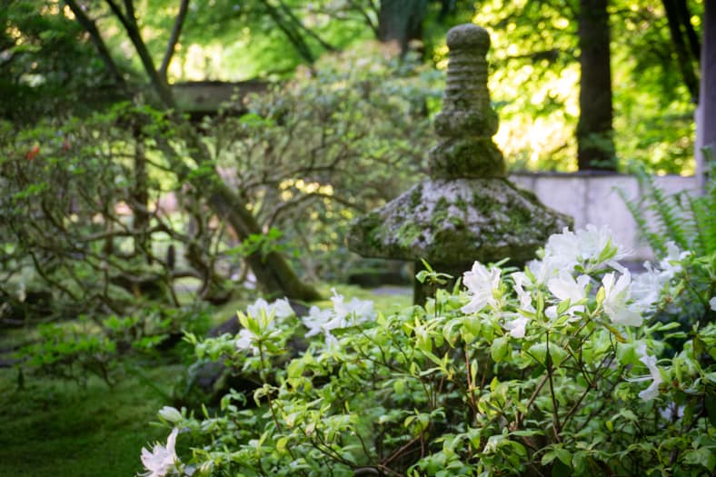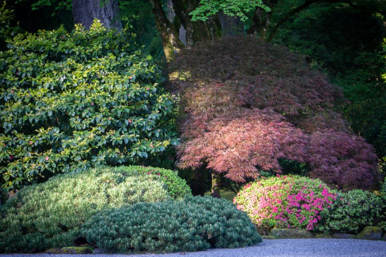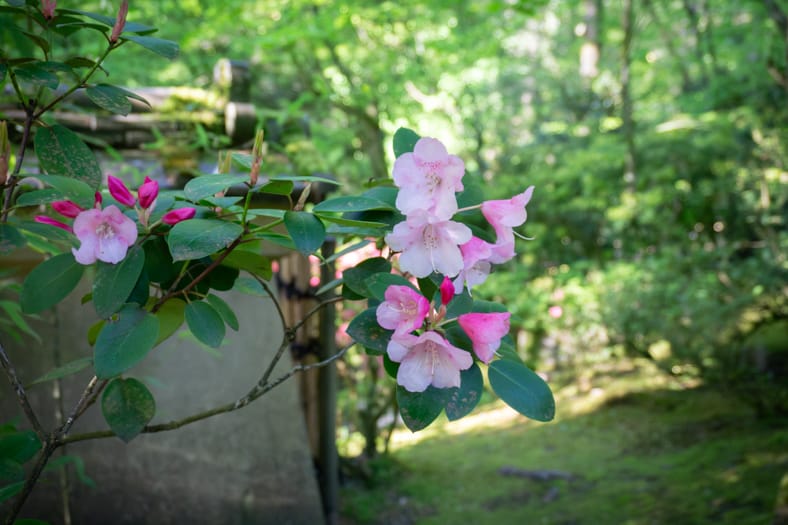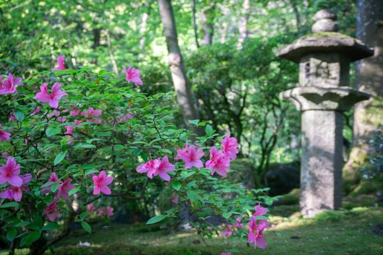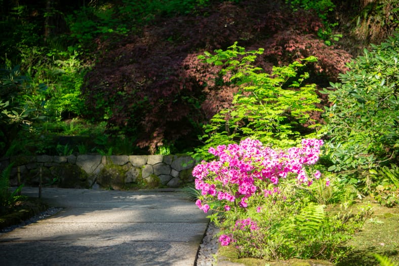 Springtime in Portland Japanese Garden showcases the green we missed in winter, from the early days of April when we see moegi-iro (Japanese word for new leaf green color) to the lush hues that accompany the approach of summer. Unlike Western gardens where flowers can dominate the field of vision, Japanese gardens very intentionally choose where blooms will be located and how they will intermingle with an otherwise predominantly green tableau. You can refer back to this page that will be updated multiple times per week as we share how blooms are appearing throughout our garden spaces. We recommend becoming a member so you can enjoy unlimited admission and exclusive morning hours every day the Garden is open.