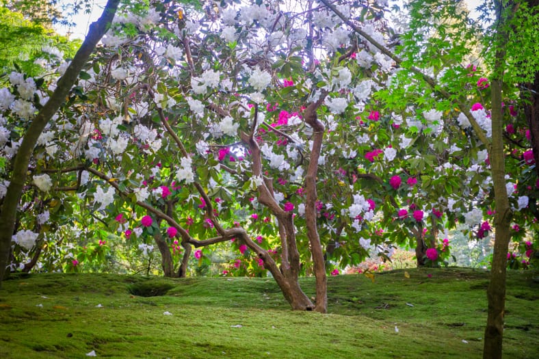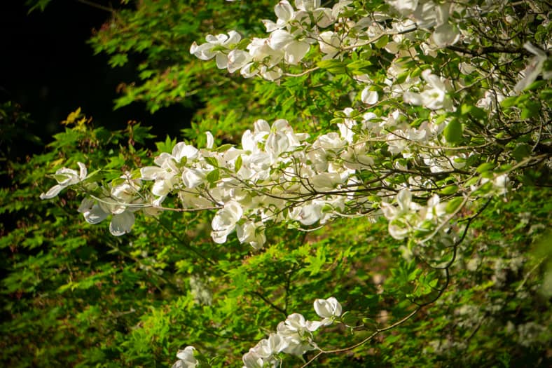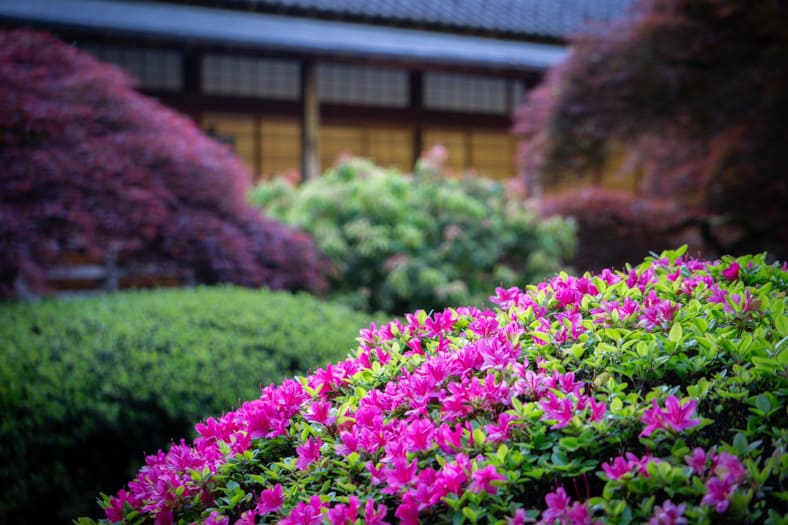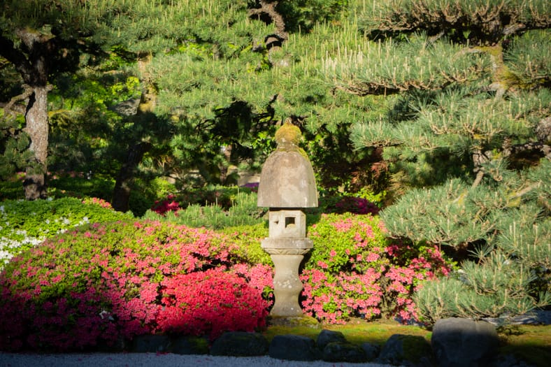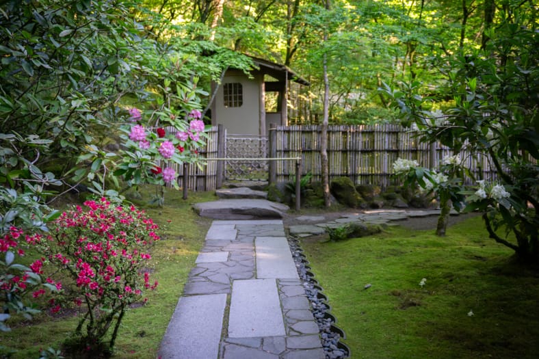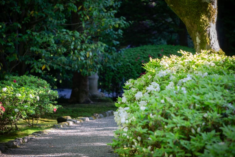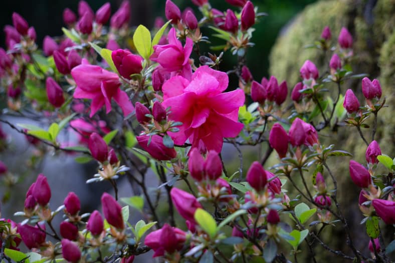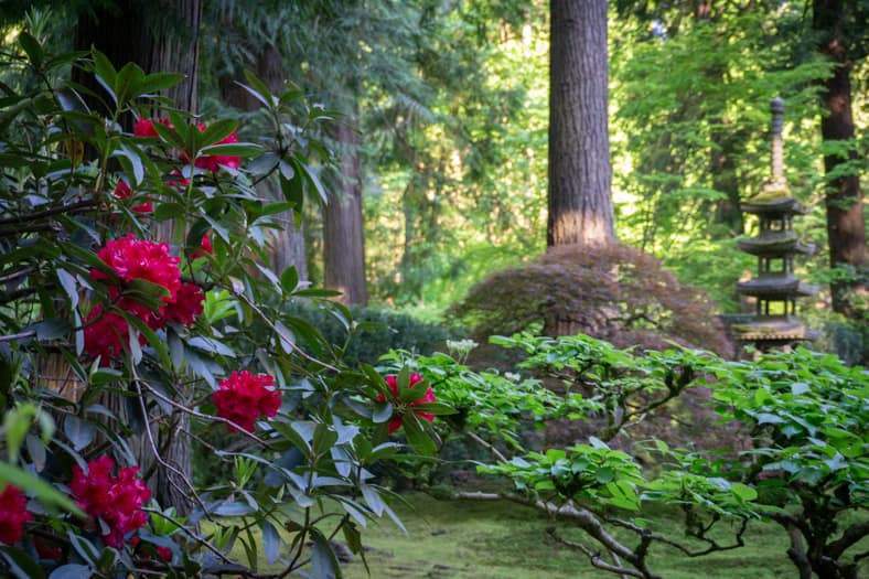 Springtime in Portland Japanese Garden showcases the green we missed in winter, from the early days of April when we see moegi-iro (Japanese word for new leaf green color) to the lush hues that accompany the approach of summer. Unlike Western gardens where flowers can dominate the field of vision, Japanese gardens very intentionally choose where blooms will be located and how they will intermingle with an otherwise predominantly green tableau. You can refer back to this page that will be updated multiple times per week as we share how blooms are appearing throughout our garden spaces. We recommend becoming a member so you can enjoy unlimited admission and exclusive morning hours every day the Garden is open.