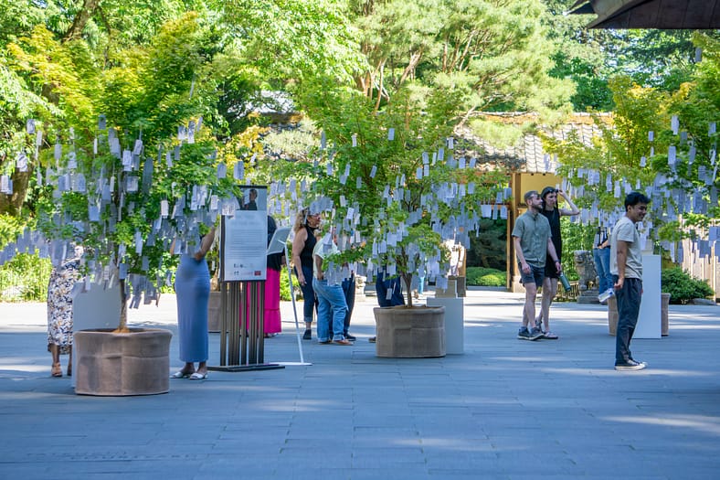 Portland Japanese Garden was founded in 1963 with the hopes that, through a public and authentically-crafted garden, the wounds of World War II could begin to heal. The Wish Tree represents what our organization has now witnessed for more than 60 years—we can bridge divides and foster dialogue through the intersection of nature, art, and cultural immersion. Through the organization’s sibling organization and global cultural initiative Japan Institute, it is honored to partner with some of the finest gardens globally, the Nobel Peace Center, and Yoko Ono’s studio in this meaningful endeavor that demonstrates how the call for peace is understood universally, although it may be expressed in many different forms.