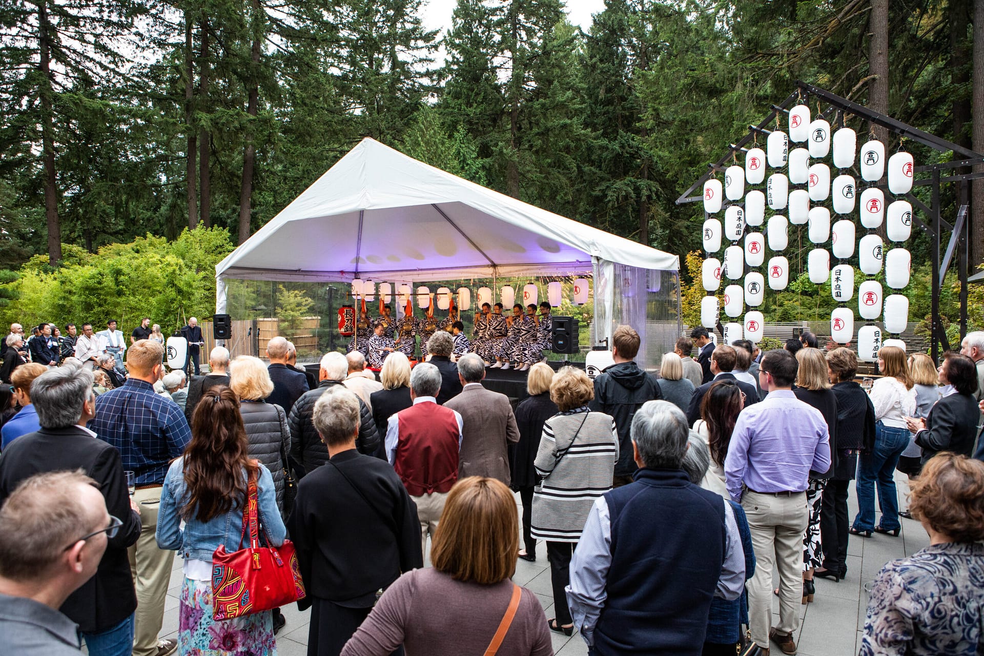 The Gion Festival lanterns bear the crest of the sponsoring neighborhood, and those on view at the Garden in the Cultural Village were custom-made in Kyoto for the 2018 exhibition. They bear the stone lantern crest of the Portland Japanese Garden with “Japanese garden” in kanji on the back.