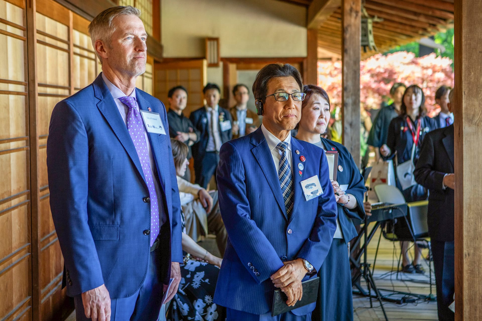 “I’m glad for this memorable 65th anniversary and this great party with Mayor Wheeler,” shared Mayor Akimoto in remarks delivered on the Mount Hood Overlook near the Garden’s Pavilion.* “My first visit to Portland was 35 years ago. It’s my pleasure to be here with all of you looking at Mount Hood over there and the city of Portland and in this beautiful Japanese garden. Mount Hood looks like Mount Fuji…it took me 20 hours to come here from Sapporo [through] connecting flights. When I got to Portland it felt like I had come back to Japan. It’s hard to find a [Japanese garden as beautiful] as this one in the U.S., but it’s also hard to find in Japan too. …I hope this friendship we have nurtured for 65 years will continue for 70 years, 80 years, 100 years, and forever.”