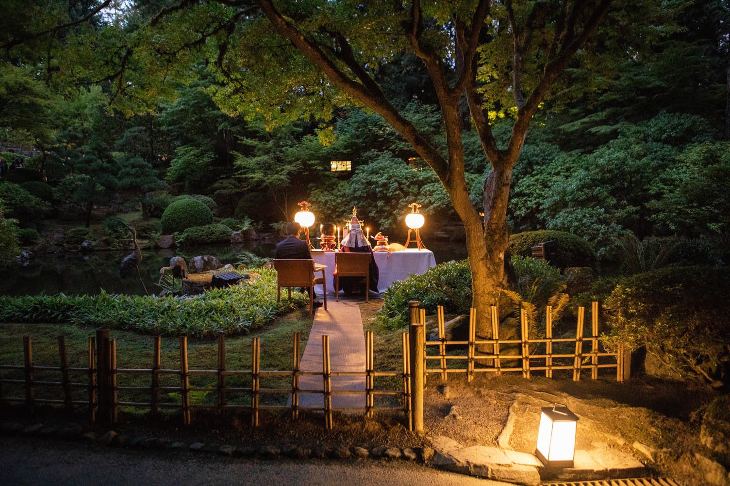 “Reverend Kodachi envisioned an inclusive event introducing locals of all religious affiliations and backgrounds to this Buddhist tradition,” shares Kelsey Cleveland, Cultural Programs Manager. “Most attendees don’t understand the Japanese he chants from the Lotus Sutra. That is okay. I can speak personally when I say how meaningful the event can be when grieving a loss. The first year I organized O-Bon at the Garden coincided with the one-year anniversary of the death of my father. The chance to mourn peacefully together as names of the recently departed are read moved me. I felt a sense of peace as I watched a candle representing my father join others floating in the upper pond. In the United States, we don’t have many rituals to mourn and honor the departed together. I’m thankful for Reverend Kodachi for giving us the opportunity do this surrounded by the beauty of Portland Japanese Garden at dusk.”