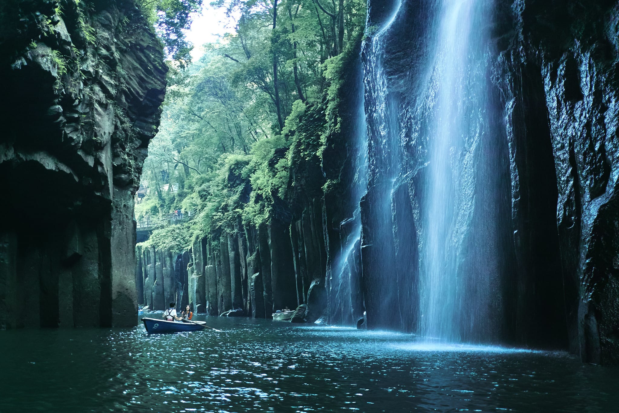 The Gorge is a long, narrow chasm lined with steep cliffs of volcanic basalt columns that tower over the Gokase River in Miyazaki, a prefecture on Japan’s southern Kyushu Island. It is located in the town of Takachiho, recently sited by The New York Times as an overlooked tourist destination. Journalist Rachel Herring notes, “the Japanese have long recognized it as a setting for Japan’s creation stories and mythology.” This site’s stone formations are awe inspiring—that they would evoke reverence and an emotional connection to something greater than oneself feels only natural.