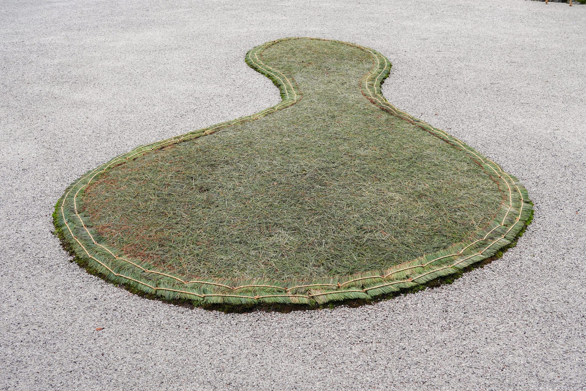Other notable touches will be added to the landscape this winter. Joining the yukizuri will be komo-maki and shiki-matsuba. Komo-maki are straw mats that are gently wrapped around tree trunks with straw rope. They help prevent insects from descending the upper reaches of the tree and reaching its roots. Shiki-matsuba, meanwhile, are coverings of dried pine needles placed on moss to help protect it from frost. These decorations fit within the idea of tei-en no fuyu-jitaku (庭園の冬支度), which translates to “garden’s winter preparation,” or as Garden Curator Hugo Torii puts it, caring for the plants by keeping them “cozy” in winter.