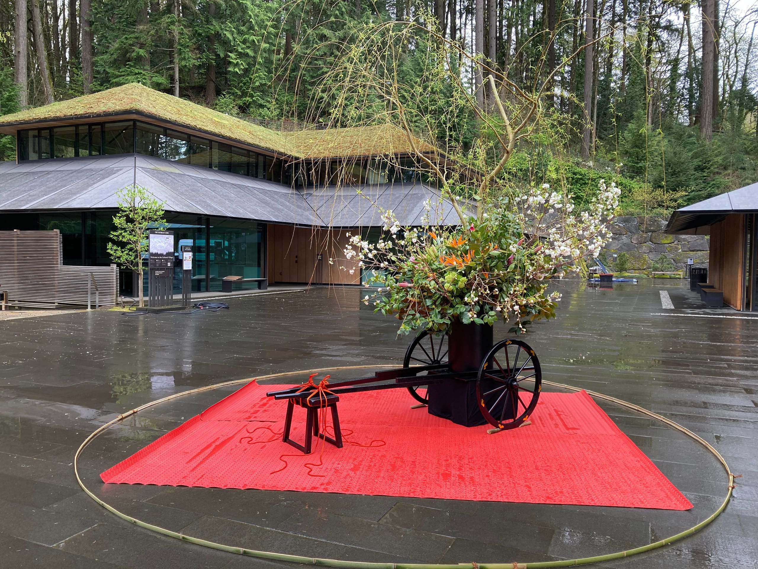 Shakamuni Buddha’s birthday is commemorated on the 8th day of the 4th month. In Japan, this celebration is called Hana Matsuri. Saga Goryu North America Chapter offered an ikebana installation for Hana Matsuri at the Portland Japanese Garden from April 9 through 12. The theme of this year’s ikebana installation was yume (夢), or “dream.” However, yume means more than just a dream—it represents hope, transformation, and a shared vision for the future. Just as dreams connect imagination with reality, ikebana brings together tradition, creativity, and the beauty of impermanence. Yume reminds us that this art form is more than an arrangement of flowers; it is a living dream that continues to evolve and inspire.