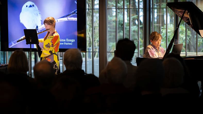 In celebration of the more than 65-year-old sister-city relationship between Portland, Oregon and Sapporo, Hokkaido, Japan, the duo of Amelia Lukas and Yoko Greeney performed a specially curated program, Music of the Birds, featuring the world premiere of “Shima Enaga (Snow Fairies)” by composer Kirsten Volness. The concert also included a conversation featuring Leah Smoot, a gardener from Portland Japanese Garden and Brodie Cass Talbot from Bird Alliance of Oregon. With a focus on the enduring friendship of Portland and Sapporo, this concert evoked the special qualities that connect these culturally rich epicenters.