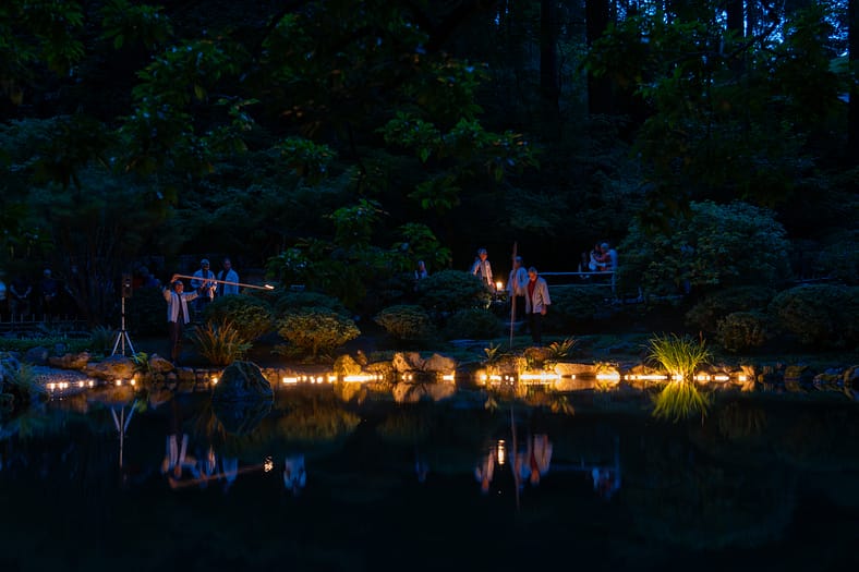 Portland Japanese Garden members were invited to take part in O-Bon, the Spirit Festival, an important Buddhist festival to honor ancestors and pray for the souls of the departed. During the magical hours of dusk in the Garden, Garden members joined us as we paid tribute to the memory of loved ones. O-Bon is both one of Portland Japanese Garden’s longest-held traditions and biggest events of the year. Reverend Zuigaku Kodachi, who proposed the idea of hosting the Spirit Festival to our organization in 1976, has introduced members of all religions and backgrounds to the Buddhist tradition of honoring the departed for close to half a century.