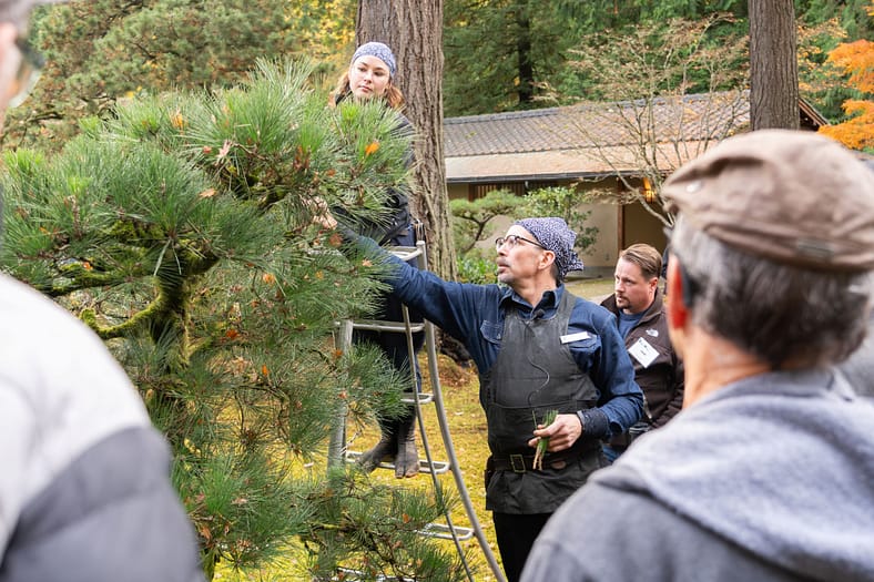 Japanese Pruning Specialist Leads Pine Pruning Demonstration
