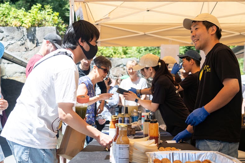 In July, Portland Japanese Garden hosted its first-ever Japanese Food Pop-Up! From July 17-19, visitors had the opportunity to explore a curated selection of ready-to-enjoy Japanese and Japan-inspired dishes, offered by a group of acclaimed local and regional culinary partners including Kuze Fuku & Sons, Oyatsupan, and the Garden’s own Umami Café. Whether craving the comforting flavors of street food or eager to try something new, this three-day event celebrated the rich diversity of Japanese cuisine with something for every taste. Even in the unrelenting summer heat, visitors were able to enjoy their treats comfortably under cozy, shaded seating in the Atsuhiko and Ina Goodwin Tateuchi Foundation Courtyard, made possible through a special partnership with outdoor lifestyle company Snow Peak.