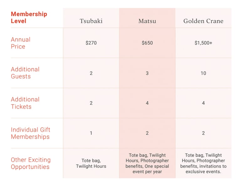 Snapshot: Comparing the Tsubaki, Matsu, and Golden Crane Membership Levels