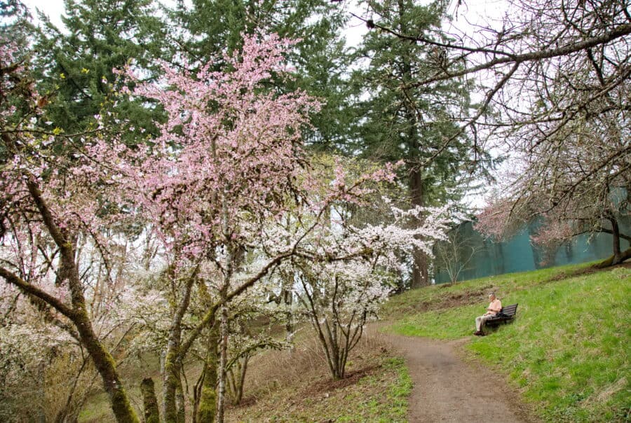 Established over a century ago in 1914, Pittock Mansion has some of the oldest cherry blossoms in Portland and one of the best views overlooking the city. In mid-March to early April, picturesque blossoms adorn the pathway to Pittock Mansion’s viewpoint, where you can take in an unparalleled view of the city skyline from 1,000 feet in elevation. Though the view is stunning on its own, the fleeting beauty of cherry blossoms makes for an extra-special experience. Visit Pittock Mansion’s website to plan your visit, and check out an exhibition while you’re there!