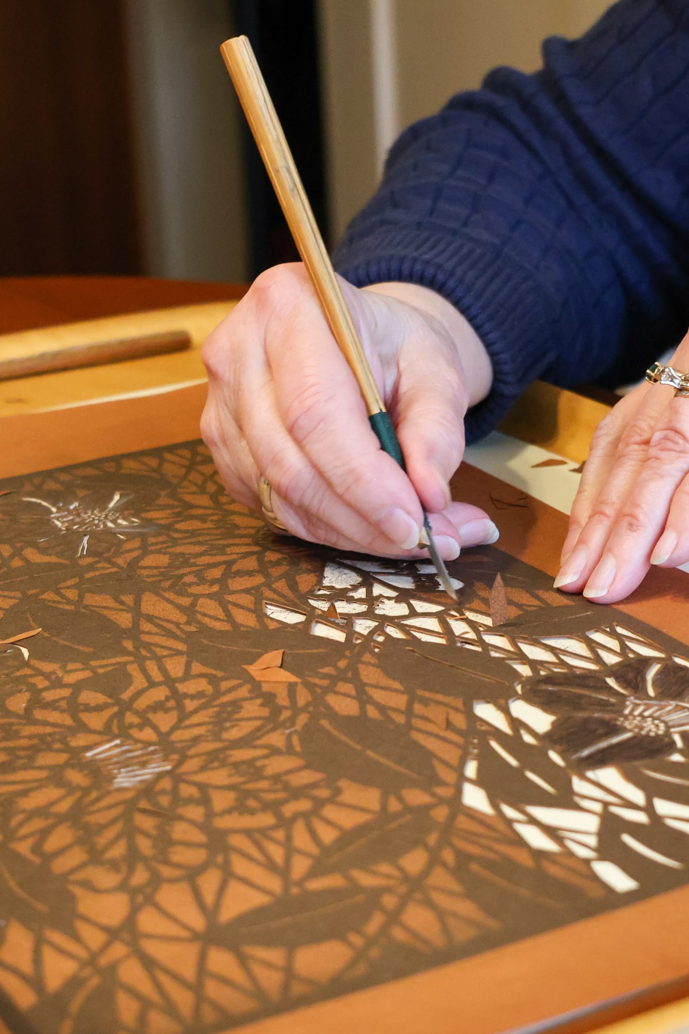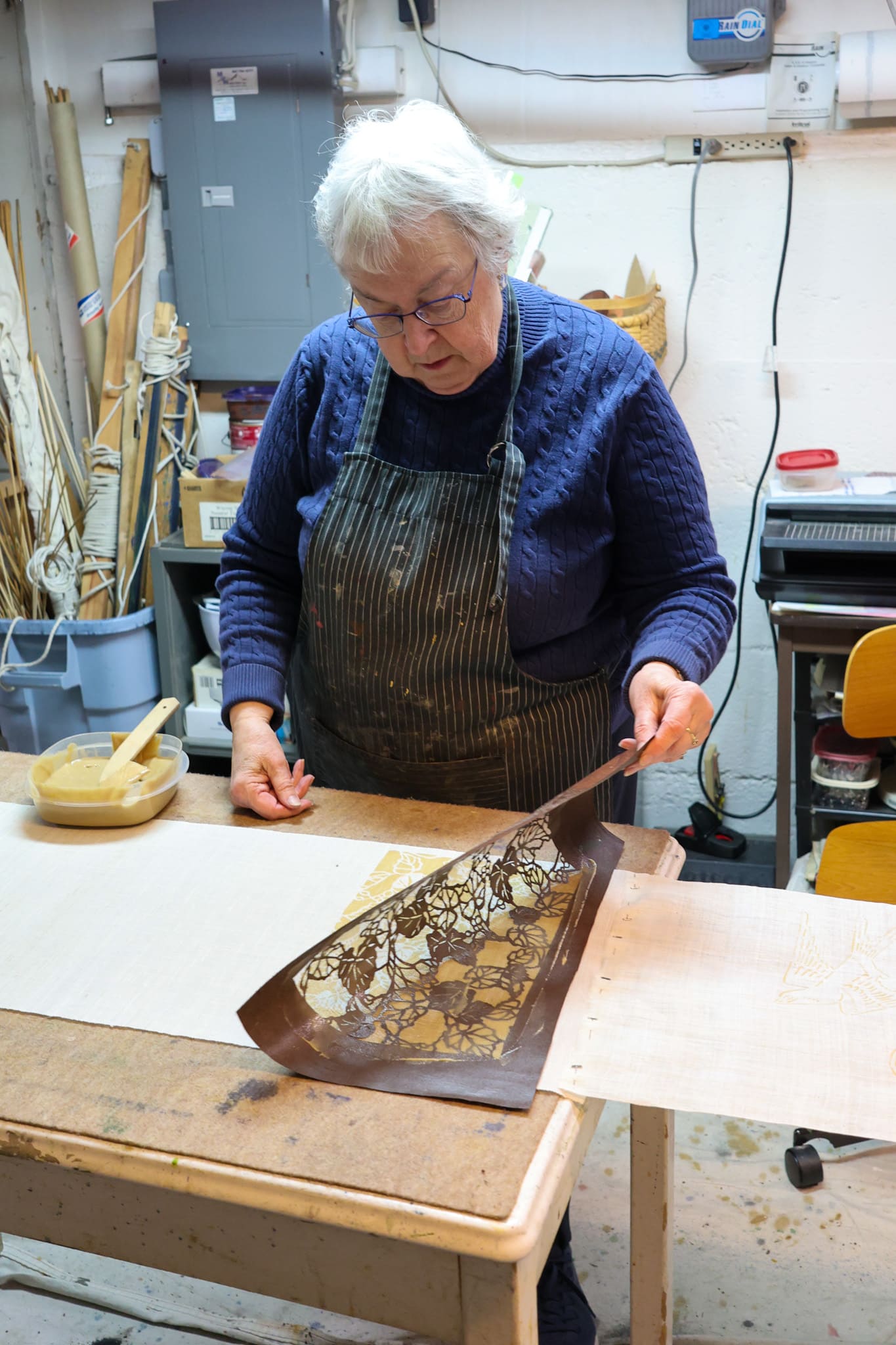 Katazome is a Japanese technique of dyeing fabrics using exquisitely cut paper stencils and resist paste to dye fabrics. During this demonstration, artist Karen Illman Miller will illustrate step-by-step the process to create beautiful, patterned textiles.