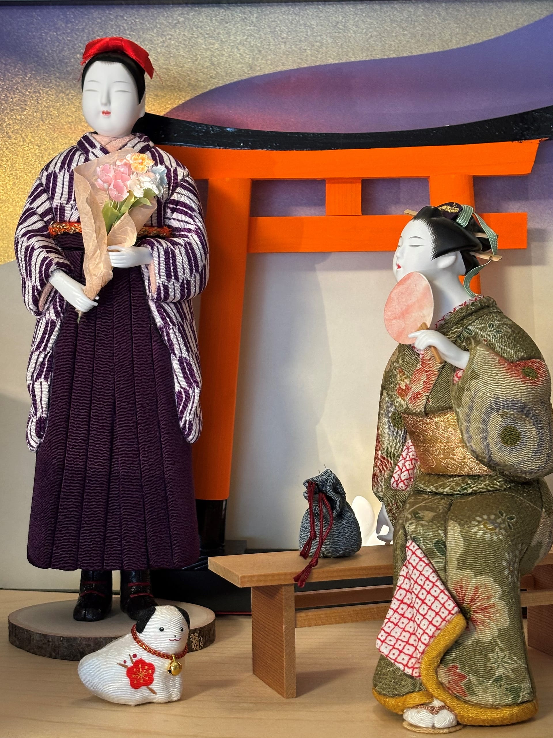 Gael Sapiro studied the traditional craft of making Kimekomi Ningyo for seven years as a member of the San Francisco-East Bay Miyabikai. She has demonstrated this craft at the San Francisco Cherry Blossom Festival and at doll clubs across Oregon.