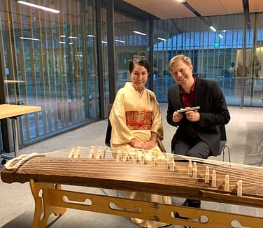 The standard Koto harp is a thirteen-string plucked zither. It was introduced to Japan from China through the Korean Peninsula in the 7th century. The instrument has been part of the Gagaku court ensemble for over one thousand years, gradually becoming popular among the merchant classes of the Edo period (1600-1868). An important member of the traditional Sankyoku ensemble, along with the three-string Shamisen and Shakuhachi (bamboo flute), the Koto developed further in a solo capacity, eventually gaining its place as one of Japan’s most prominent musical instruments. Today a varied repertoire along with a wide range of playing techniques provides a wonderful palette of sound textures, making the Koto appealing to audiences the world over.