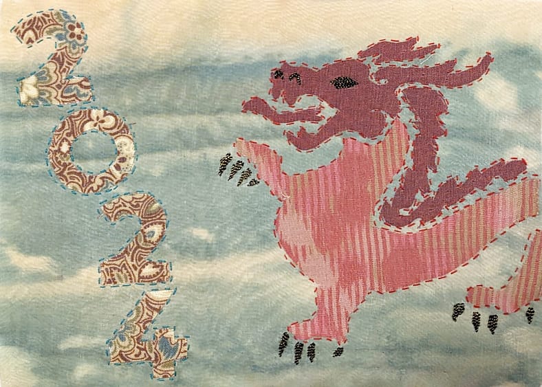 According to folklore, those born under the Year of the Dragon are ambitious, confident, and seen as natural-born leaders. Capture the imagery of the powerful dragon by “painting” with layers of fabric and a variety of hand embroidery stitches in this meditative workshop. Students will leave with a large postcard-sized (5″x 7″) textile appropriate for display or gifting for the New Year.