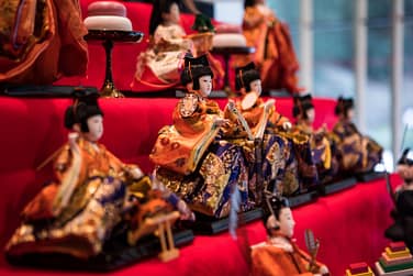 Hina dolls are displayed prominently in the home. The display always includes the Emperor and Empress on the first tier. Each region in Japan has its own distinctive style of Hina dolls and displays them according to local tradition. Hina dolls are not played with and are carefully packed away at the end of the festival.