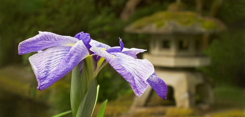 As the Garden transforms into a picturesque greenscape, the Japanese iris provide a pop of color as the harbinger of summer. The buds open in late June to reveal flowers nearly six inches across in shades of purple and white. Symbolizing purity and innocence, the narrow iris leaf resembles the shape of a samurai sword blade.