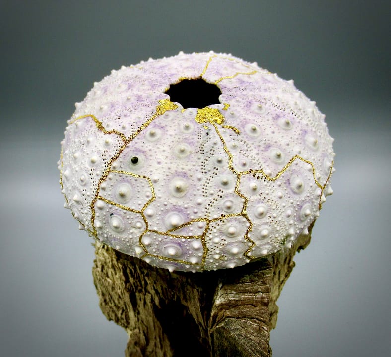 “I visited Portland Japanese Garden in November 2022. I was drawn in by each element of the landscape, which brought up nostalgic childhood memories of my grandparents taking me to various Japanese gardens in Kyoto. Moss carpets created spaces of deep tranquility and transcendent beauty; water flowing through the rocks of the creek symbolized the flow of life; and skillfully pruned pine trees were stylized structures that lent each of the specimens its own personality. I was fascinated by the authenticity and magic of Portland Japanese Garden. At the end of my visit, I realized that care and love are the main ingredients of this place. It was unmistakable that staff, volunteers, visitors, and all who were involved in this Garden, were giving so much love, care, passion, and pride here. This truly resonates with my kintsugi artwork. Kintsugi is a 500-year-old art form of mending damaged ceramics with urushi, natural lacquer, dusted with powdered gold. This method of mending is seen as enhancing the beauty and value of objects by celebrating their imperfection and impermanence. This approach is the opposite of traditional Western ceramic restoration, in which the damage to the work is sought to be hidden, which I studied and practiced for 25 years.”