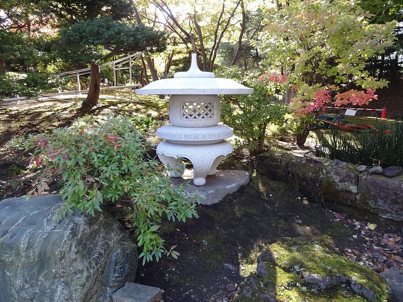 The peace lantern at Portland Japanese Garden sits on the east bank of the Upper Strolling Pond and serves as a reminder of a deep desire for understanding and appreciation between two diverse cultures. In 2017, the Garden presented an exact replica of the peace lantern to the city of Yokohama, where it sits today in a stately garden casting the “Light of Everlasting Peace.”