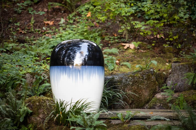 Portland Japanese Garden is delighted to welcome internationally acclaimed artist Jun Kaneko (b. 1942-). Kaneko, recently honored with the prestigious Lifetime Achievement Award from the International Sculpture Center, has made major contributions to the field of sculptural art on a global scale, exploring the relationships between art, nature, and people with the bold placement of his works.